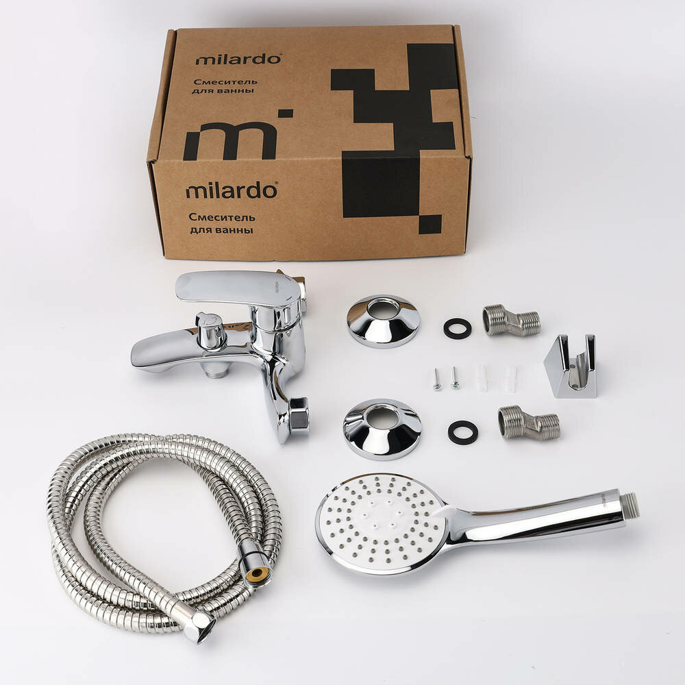 Смеситель для ванны Rora отличается универсальным характером: основной акцент в его дизайне приходится на плавные линии корпуса и классическое цветовое решение. Модель с коротким фиксированным изливом надежна и удобна в ежедневном использовании. Интенсивность и температура потока легко регулируются удобной ручкой смесителя. Поворотный дивертор работает при любом давлении воды, переключая поток воды на большую душевую лейку (o 100 мм) или в комбинированном режиме. • Ручная лейка из прочного ABS-пластика, ПВХ-шланг (1,5 м) в оплетке из нержавеющей стали и крепеж идут в комплекте. • Качественный механизм смешивания воды смесителя Milardo® рассчитан на более чем 70 000 циклов работы – это не менее 15 лет эксплуатации семьей из трех человек. • Оптимальная толщина никель-хромового покрытия защищает смеситель от образования трещин и сколов, продлевает срок его службы. • Гарантия на смеситель Milardo® – 7 лет, на картридж – 3 года, на душевые аксессуары – 1 год.