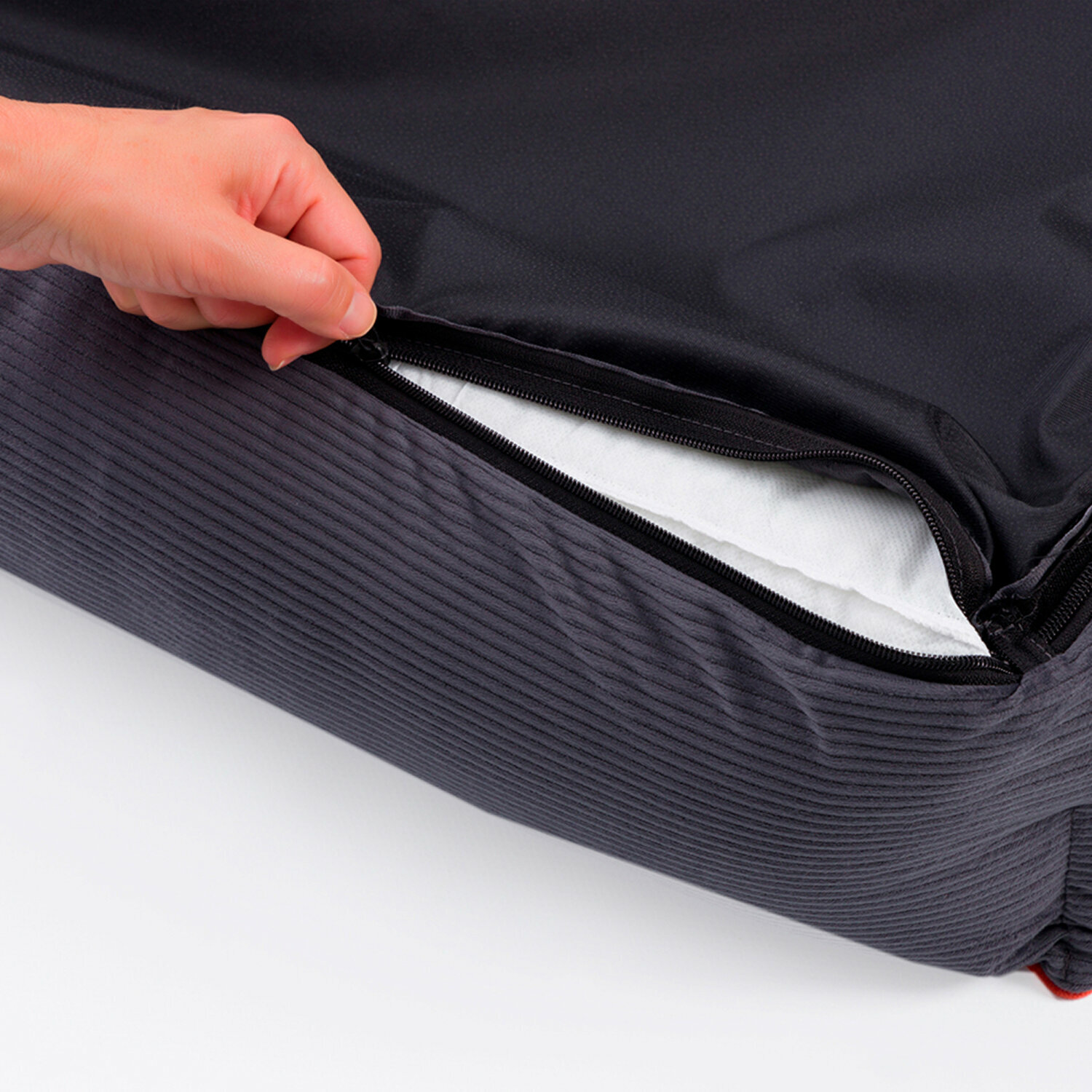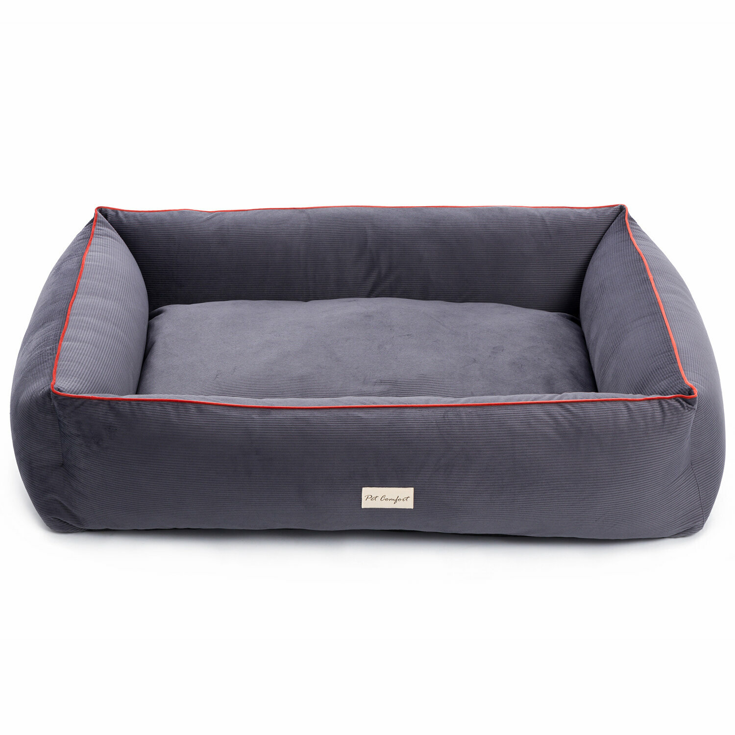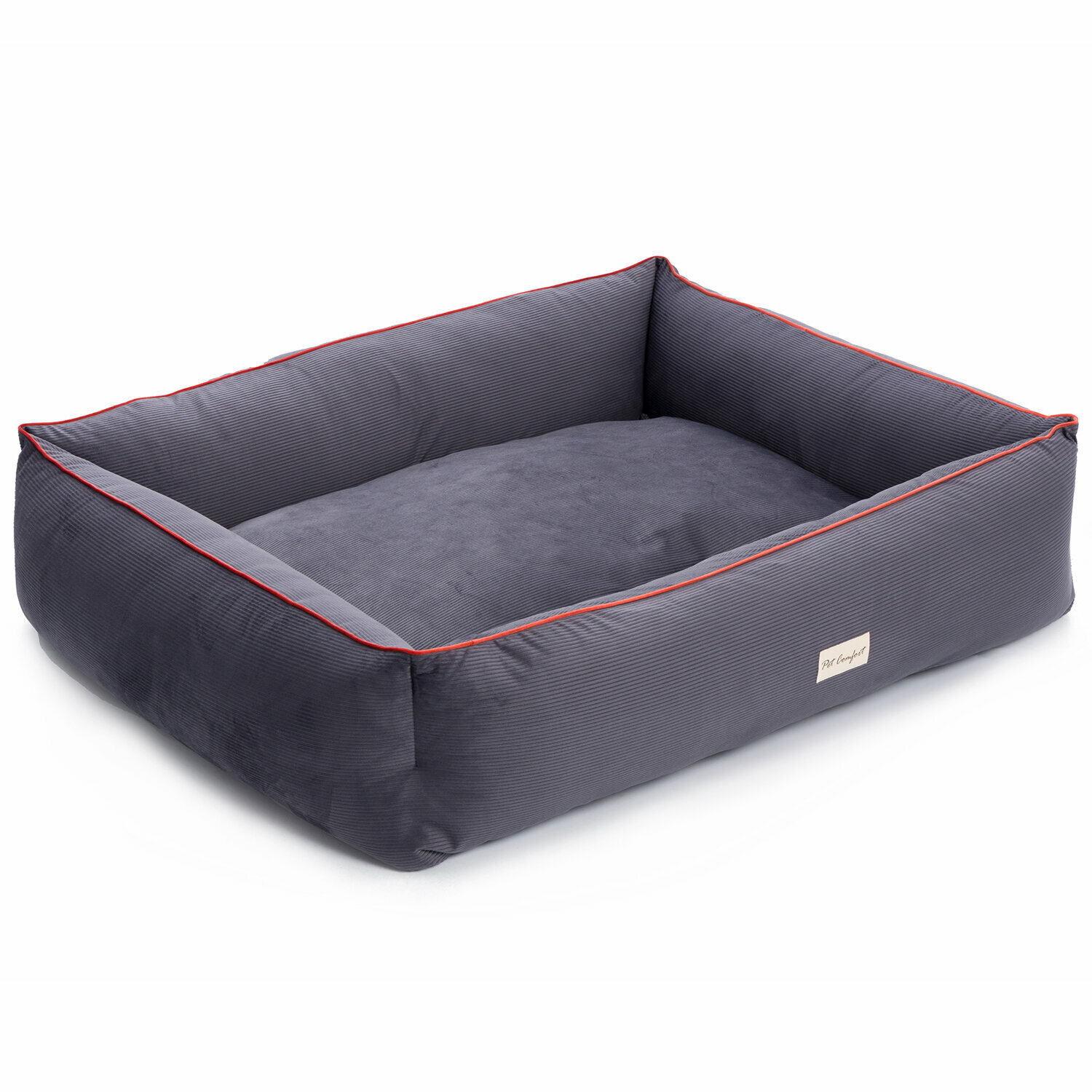 Удобная лежанка с бортиками для собак очень крупных пород. Высокие бортики создают ощущение дополнительного комфорта. Легкоочищаемый материал лежанки. Съёмный чехол можно стирать в стиральной машине температуре 30 °C, а внутренний наполнитель на программе ручная или бережная стирка. Противоскользящая нижняя поверхность лежанки.