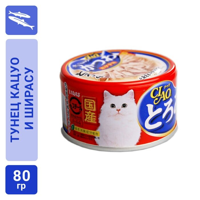 На сегодняшний день товар «INABA CIAO TOROMI Корм влаж.куриное филе с тунцом кацуо и мальками ширасу д/кошек конс.80г (139.1127)» можно купить с кешбеком в 1 магазине: Яндекс.Маркет