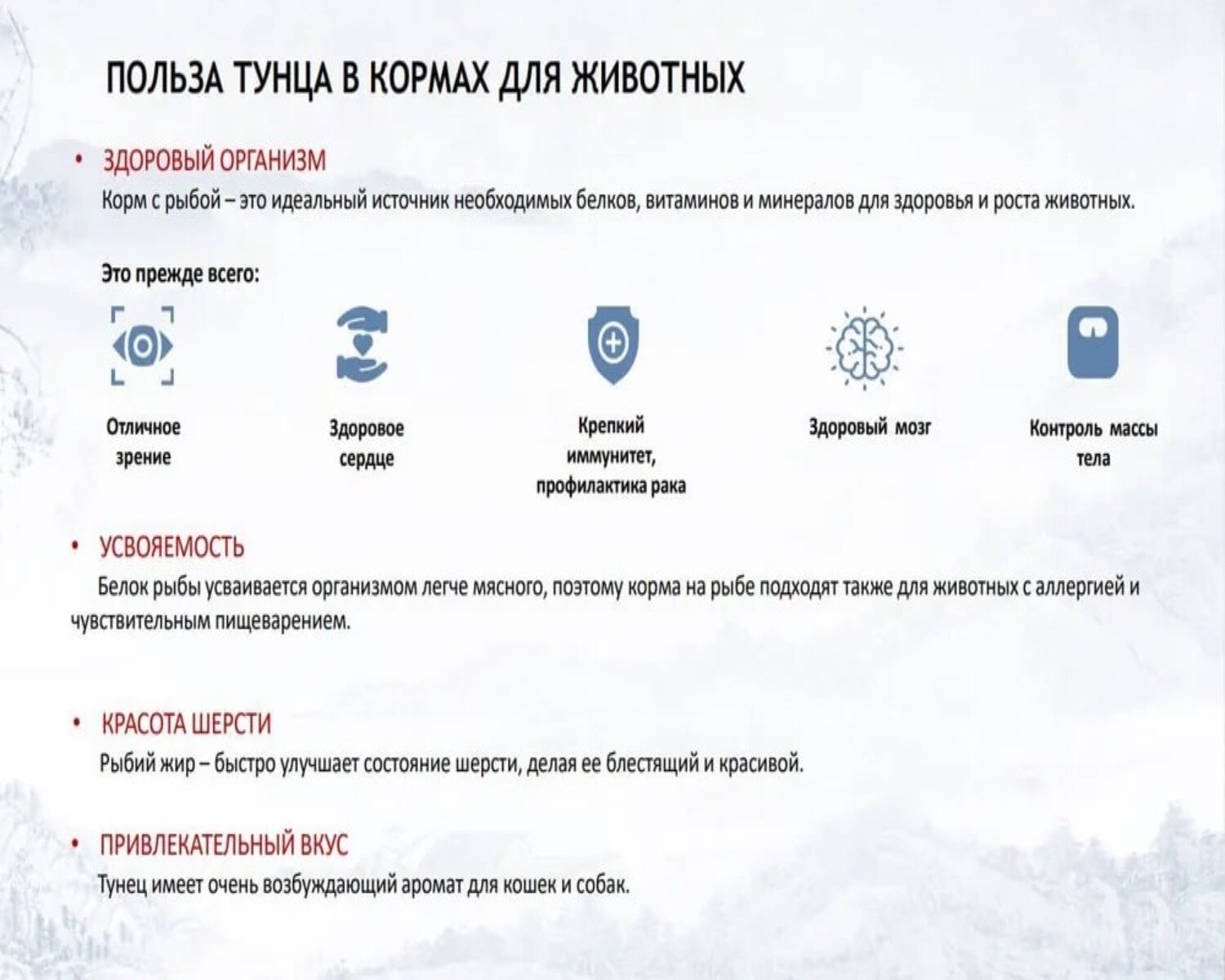 | Вкус | Куриное филе, тунец Кацуо с мальками ширасу |