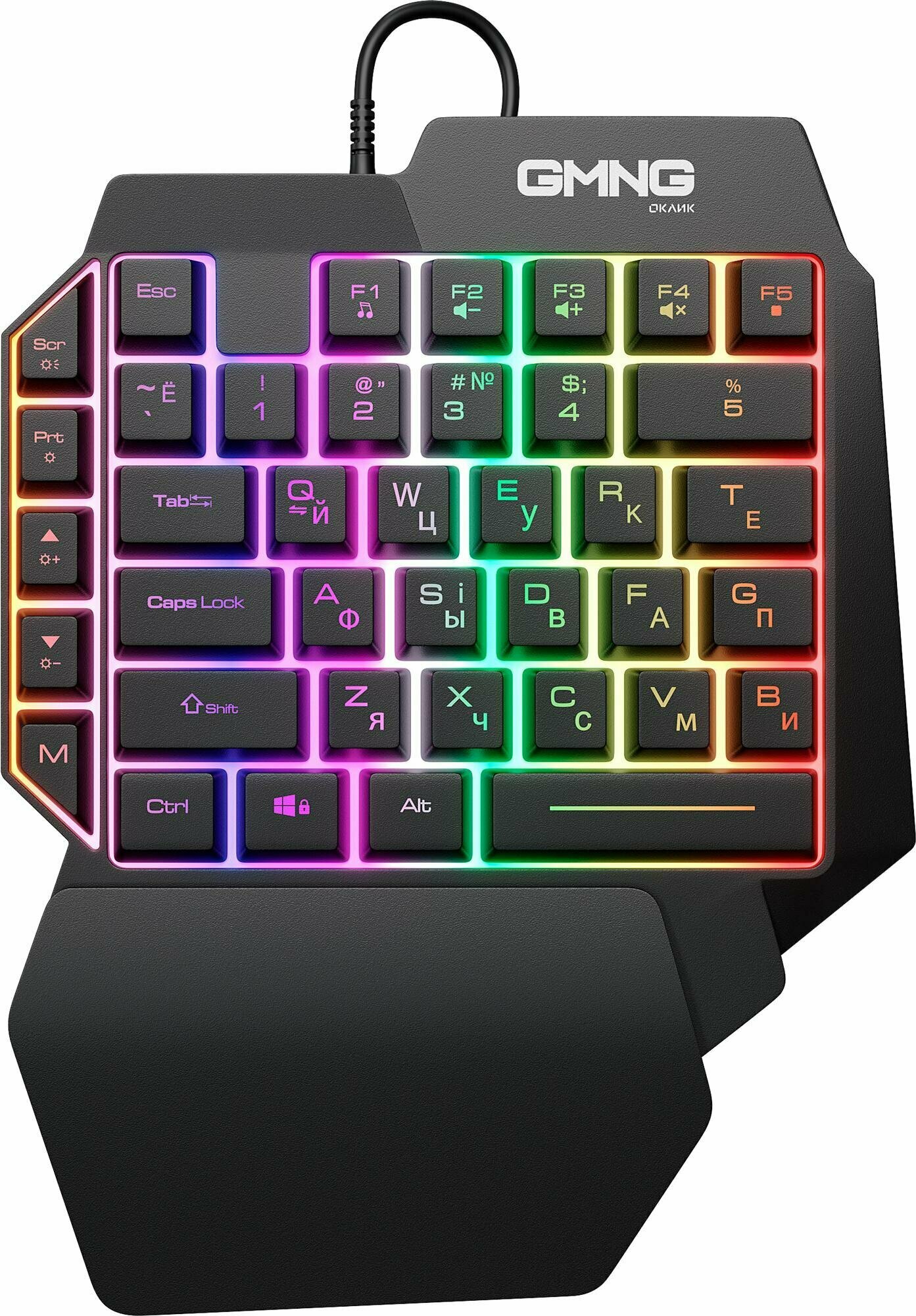 Игровой блок Оклик 705GK черный, интерфейс USB, Multimedia клавиши, игровые клавиши, подсветка LED, (подставка для запястий) (1620882)