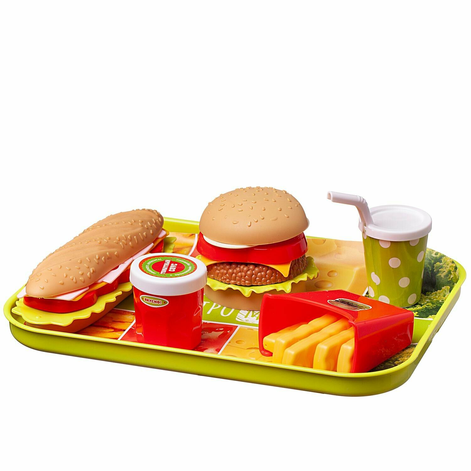Комплектность: бутерброд – 1 шт., картошка фри – 1 шт., стакан с трубочкой – 1 шт., сэндвич – 1 шт., баночка с соусом - 1 шт., поднос – 1 шт.