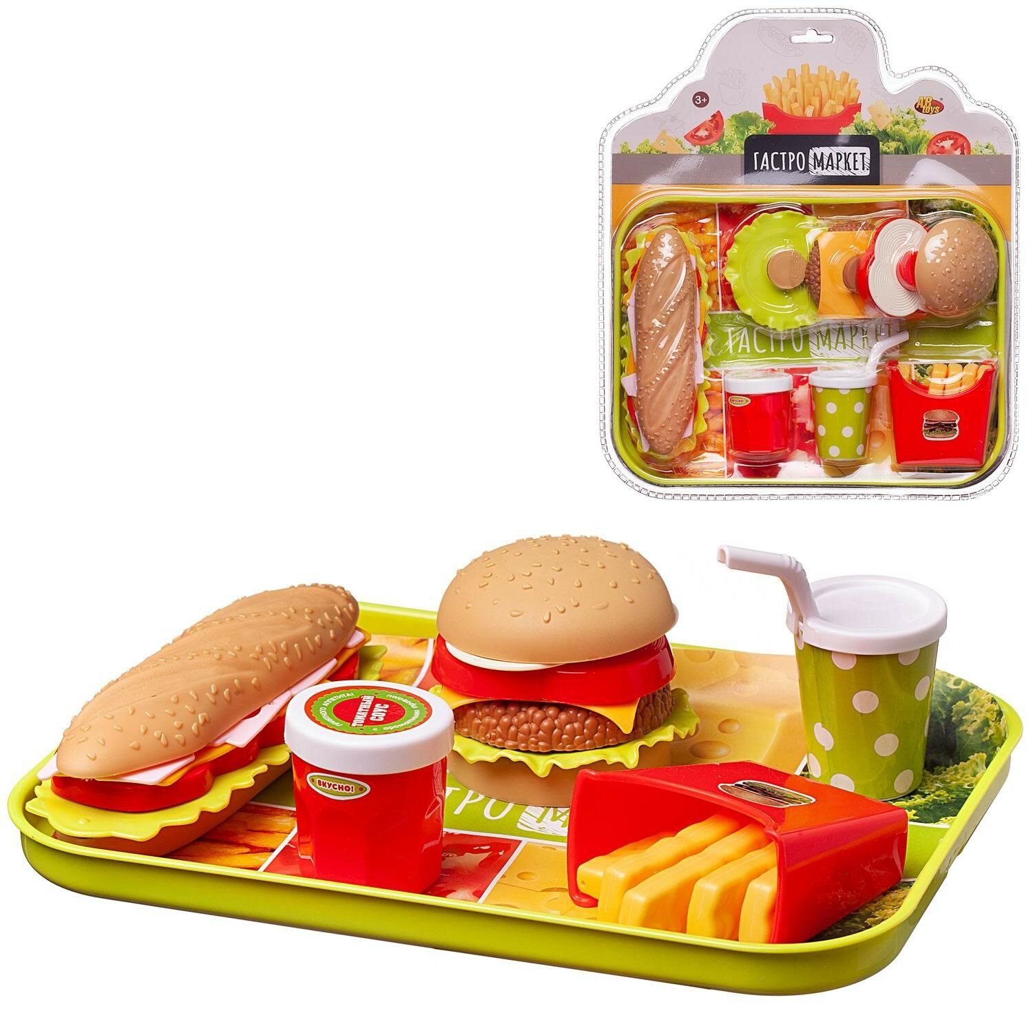 Игровой набор «Гастромаркет» от бренда Abtoys включает продукты, которые очень похожи на так любимые всеми детьми угощения из ресторанов быстрого питания. В его составе муляжи продуктов (бутерброд, сэндвич, картошка фри и другие), которые выглядят весьма реалистично. Бутерброд можно разбирать и снова собирать. При сборке ребенок может включать в его состав любимые продукты и исключать те, которые ему не по вкусу. Такими продуктами ребенок сможет накормить своих игрушечных друзей.