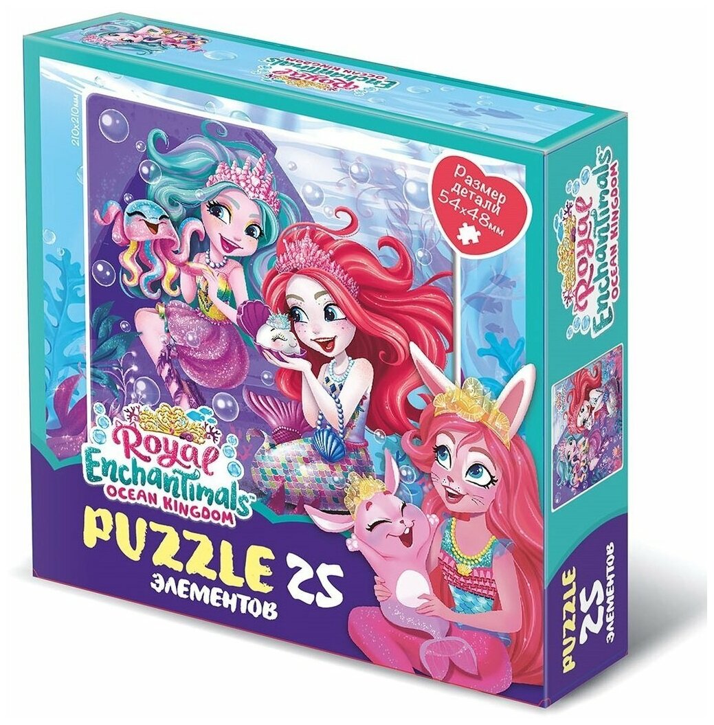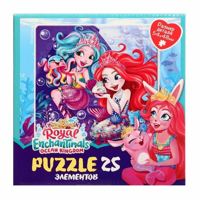 Пазл 25 элементов, основанный на любимых приключениях героинь Энчантималс в подводном мире понравится любому ребенку, а сборка яркой картинки принесет радость не только малышам, но и их родителям. Соберите всю коллекцию новых пазлов!