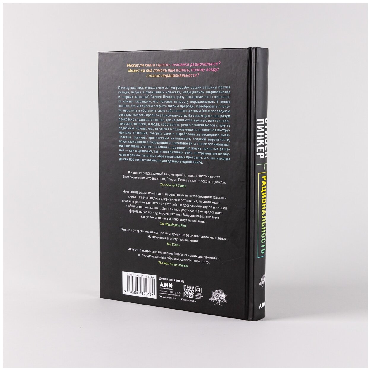 Прямо сейчас человечество достигает новых высот научного понимания — и в тоже время, кажется, постепенно сходит с ума. Почему вид, меньше чем за год разработавший вакцины против ковида, погряз в фальшивых новостях, медицинском шарлатанстве и теориях заговора? Пинкер сразу отказывается от циничного клише, гласящего, что человек попросту нерационален — что это вечный троглодит, готовый среагировать на льва в траве ворохом предрассудков, слепых пятен, ложных умозаключений и иллюзий. В конце концов, это мы смогли открыть законы природы, преобразить планету, продлить и обогатить свою собственную жизнь и (не в последнюю очередь) вывести правила рациональности. На самом деле наш разум приспособлен не к одной только саванне плейстоценовой эпохи. Он прекрасно справляется везде, где не решаются научные или технологические вопросы, а люди, собственно, редко сталкиваются с чем-то подобным. Но они, увы, не умеют в полной мере пользоваться инструментами познания, которые сами и выработали за последние тысячелетия: логикой, критическим мышлением, теорией вероятности, представлениями о корреляции и причинности, а также оптимальными способами уточнять мнения и проводить в жизнь принятые решения — как в одиночку, так и коллективно. Этим инструментам не обучают в рамках типичных образовательных программ, и о них никогда до сих пор не рассказывали доходчиво в одной книге.