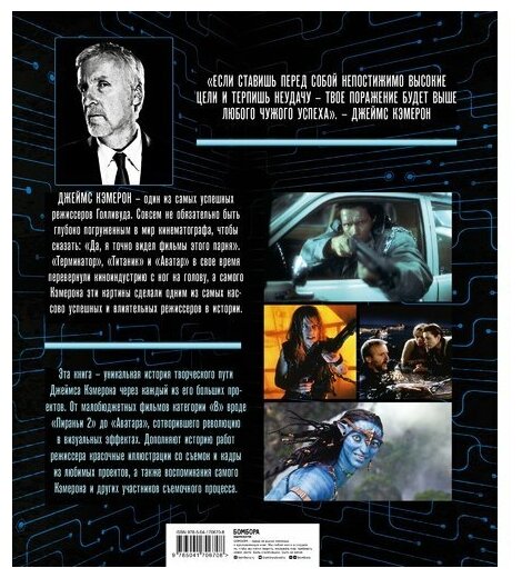 «Джеймс Кэмерон. Иллюстрированная биография. От "Титаника" до "Аватара"» — настоящая энциклопедия творчества Кэмерона. Это большое подарочное издание на мелованной бумаге, посвященное одному из самых великих режиссеров наших дней. Внутри вы найдете хронику его творческой жизни, весь его путь — от «Терминатора» и «Бездны» до беспрецедентного «Аватара». Как он начинал, что его вдохновляло, что мешало и, самое главное — чего ждать от него в будущем.