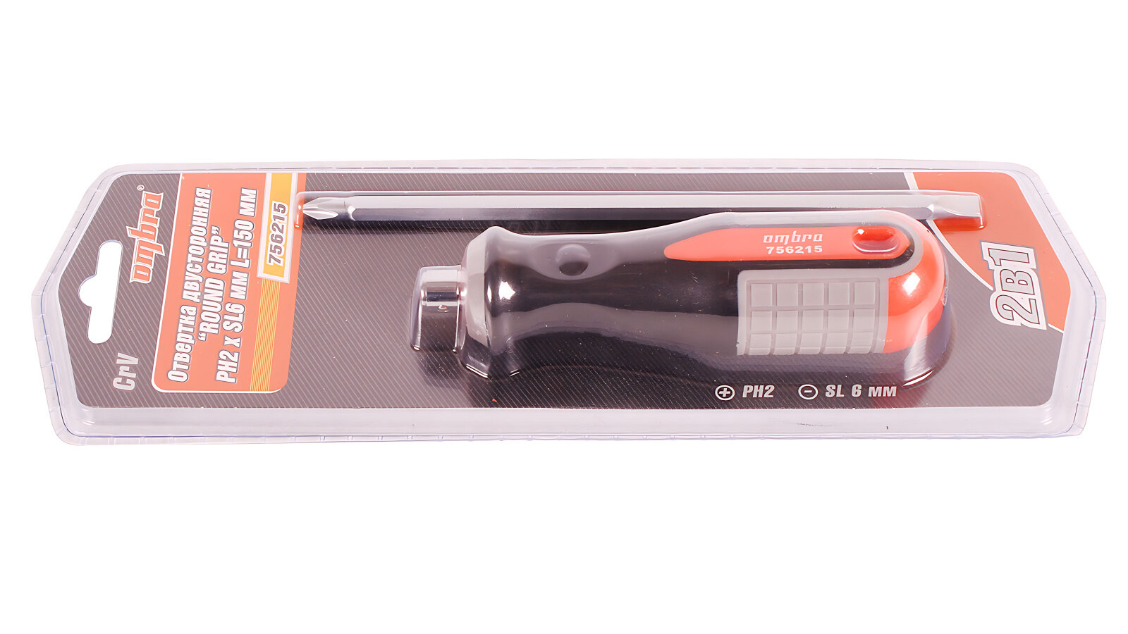 Отвертка стержневая двусторонняя Ombra применяется со всеми видами крепежа, имеющего внутренний рабочий профиль РН (крест) и SL (шлиц прямой). Двухкомпонентная эргономичная рукоятка, состоящая из термопластичной резины и износостойкого пластика.