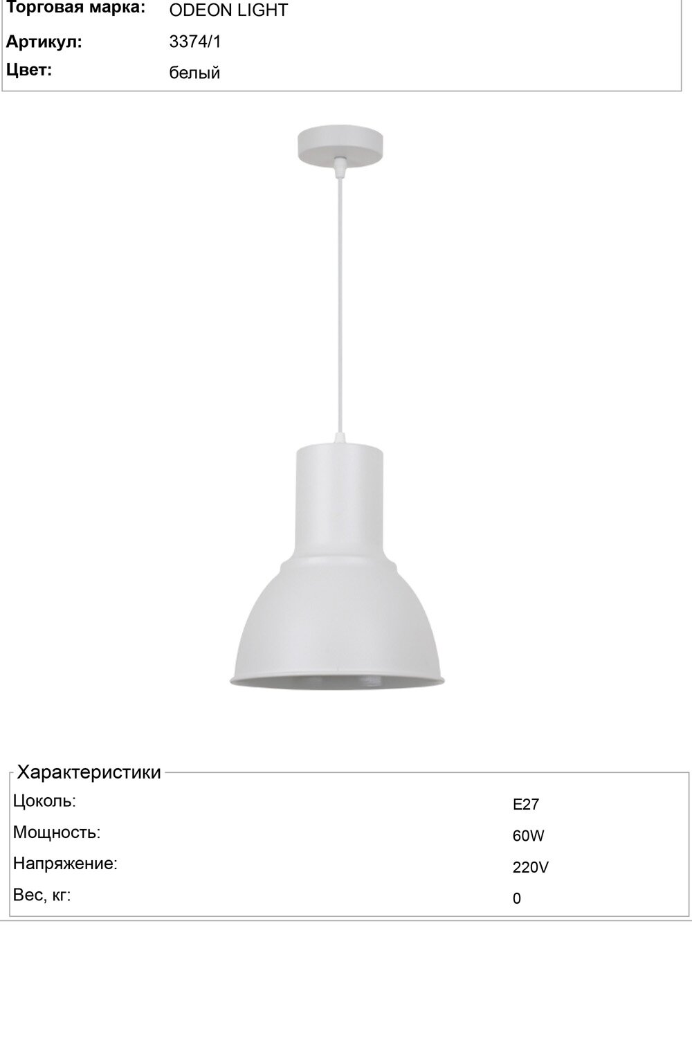 | Цвет плафона / абажура | белый, матовый |