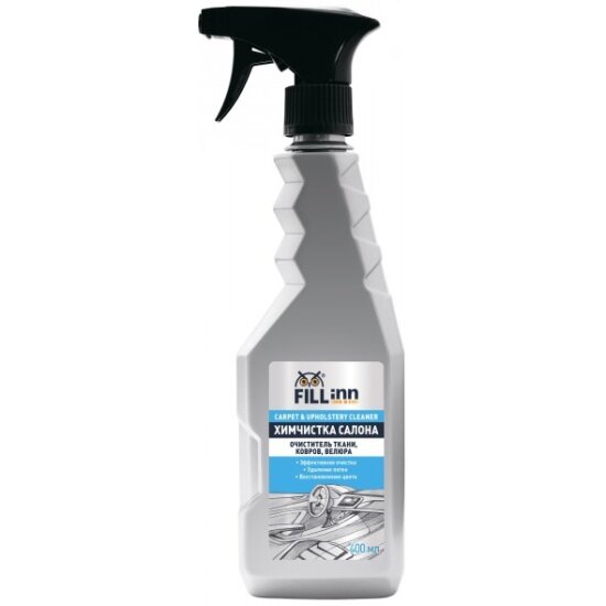Очиститель обивки Fill Inn благодаря улучшенной пенной формуле эффективно очищает тканевую и ковровую обивку покрытий салона автомобиля от въевшейся грязи. Выводит пятна и восстанавливает утерянный цвет, расправляет примявшийся ворс. Создает пенный слой приникающего действия, который удерживается на поверхности, не впитывается и не стекает, что позволяет очистить сидения, обивку дверей и потолка, ковровые покрытия. Освежает и ароматизирует воздух.