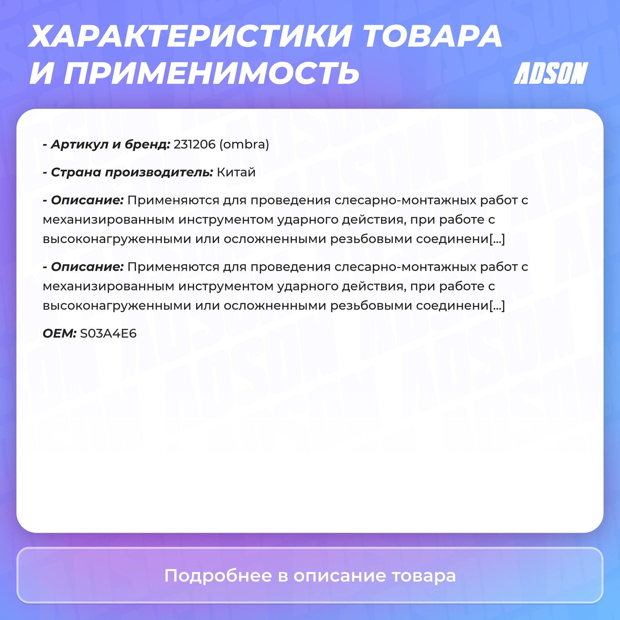 Сервис сравнения цен СкидкаГИД предлагает сравнить цены на товар «Ударный удлинитель Ombra 231206»