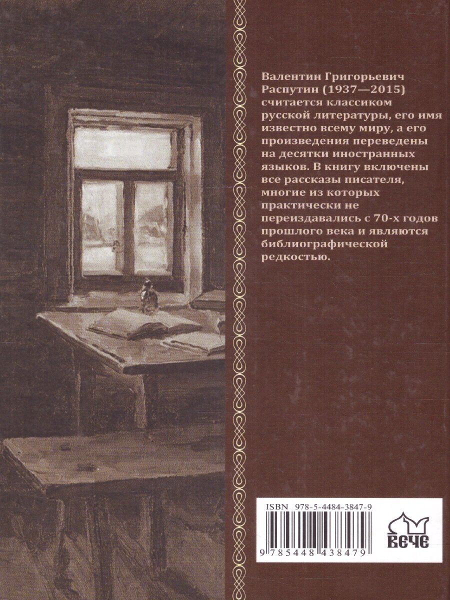 Валентин Григорьевич Распутин (1937-2015) считается классиком русской литературы, его имя известно всему миру, а его произведения переведены на десятки иностранных языков. В книгу включены все рассказы писателя, многие из которых практически не переиздавались с 70-х годов прошлого века и являются библиографической редкостью.