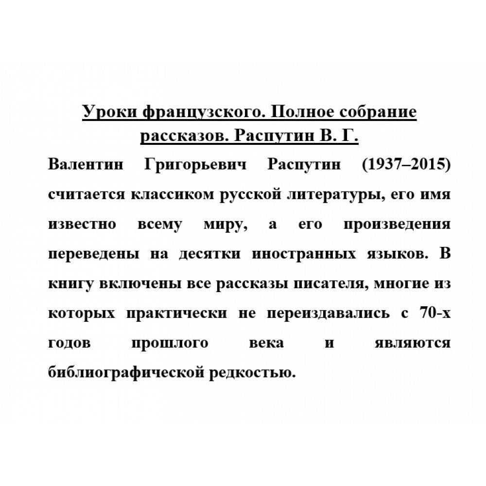 Сервис сравнения цен СкидкаГИД предлагает сравнить цены на товар «Книга: Уроки французского. Полное собрание рассказов (Распутин Валентин Григорьевич); Вече, 2022»