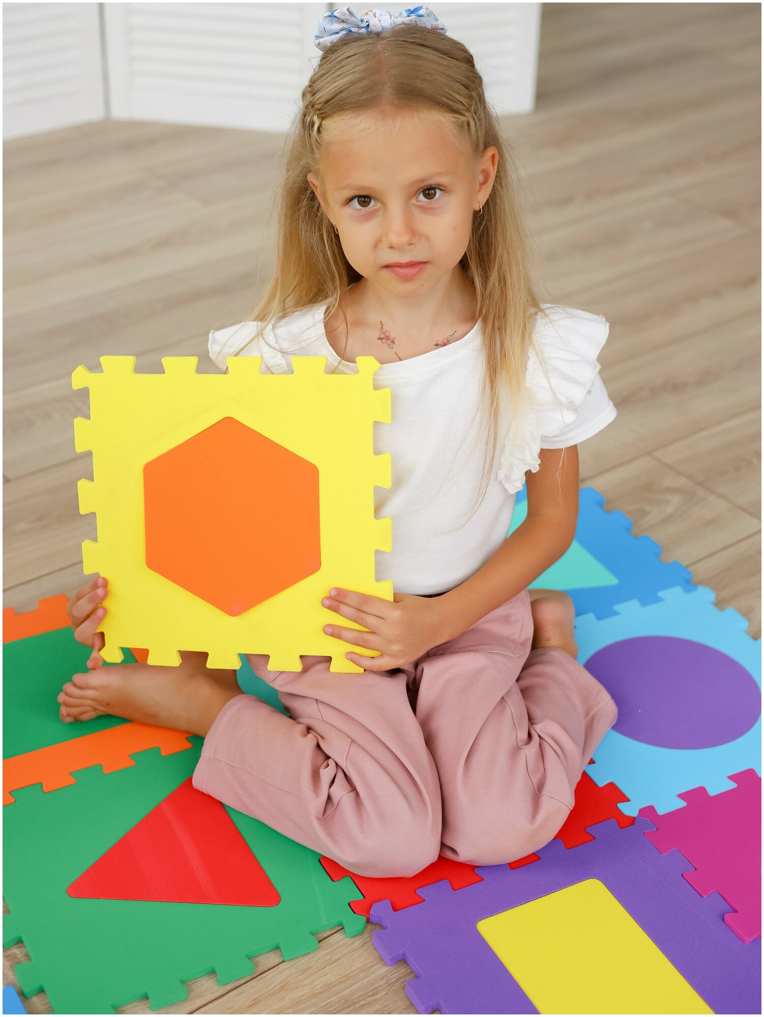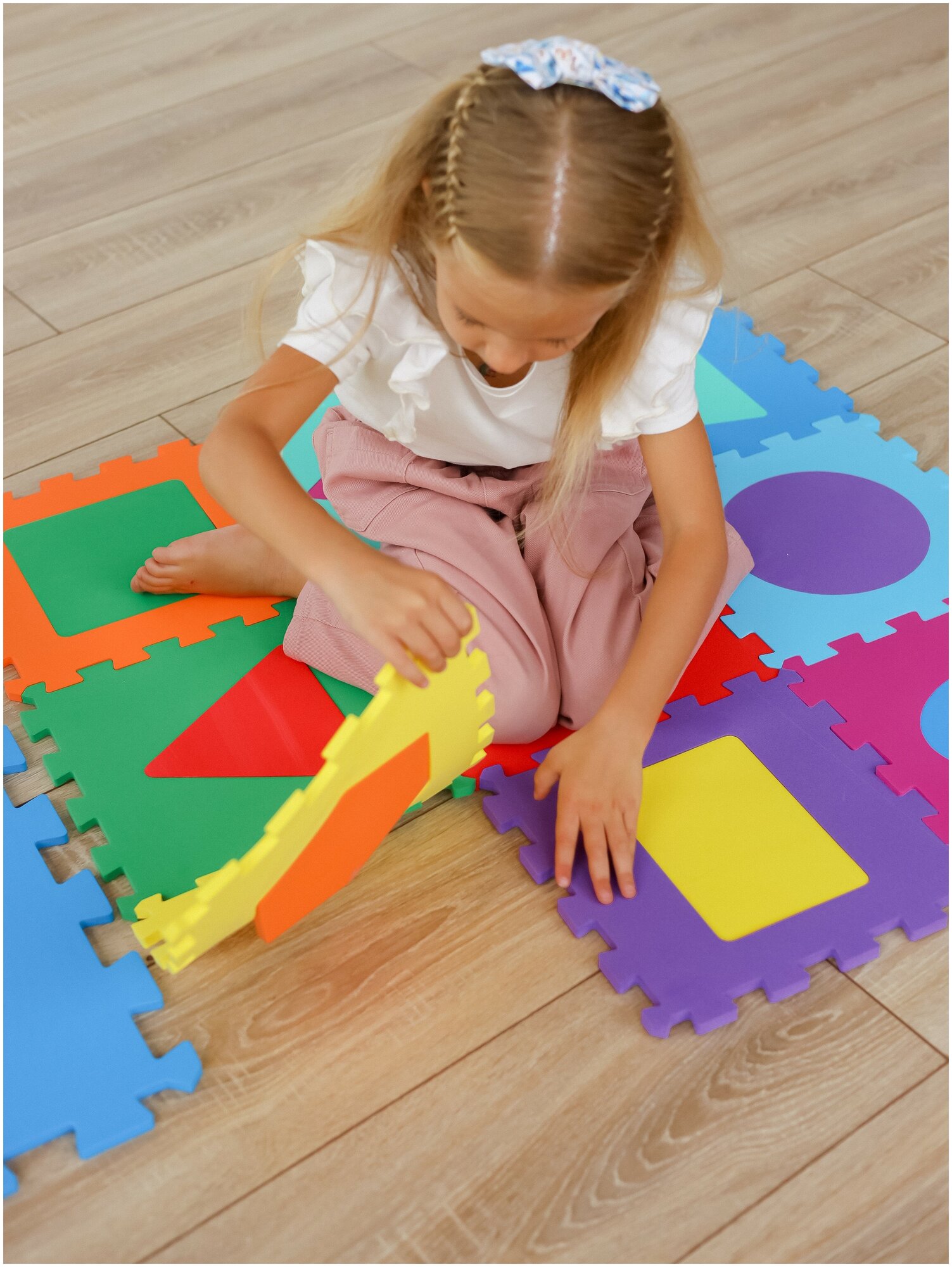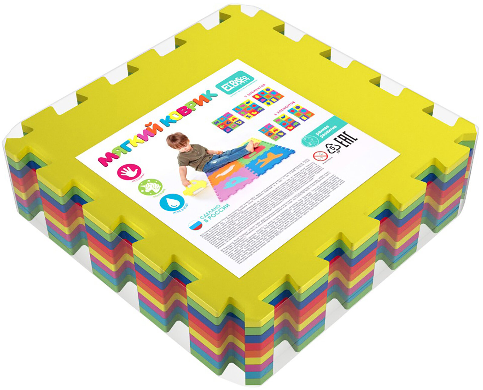 Детский коврик, состоящий из 9 элементов. С мягким ковриком ребенку будет весело и комфортно познавать мир. Коврик приятный на ощупь и не боится воды, состоит из безопасного материала ЭВА. Коврик 5в1 можно использовать в качестве напольного покрытия, собирать в куб, изучать цвета и цифры, купаться в ванной, а также тренировать зрительное восприятие, логику и моторику.
