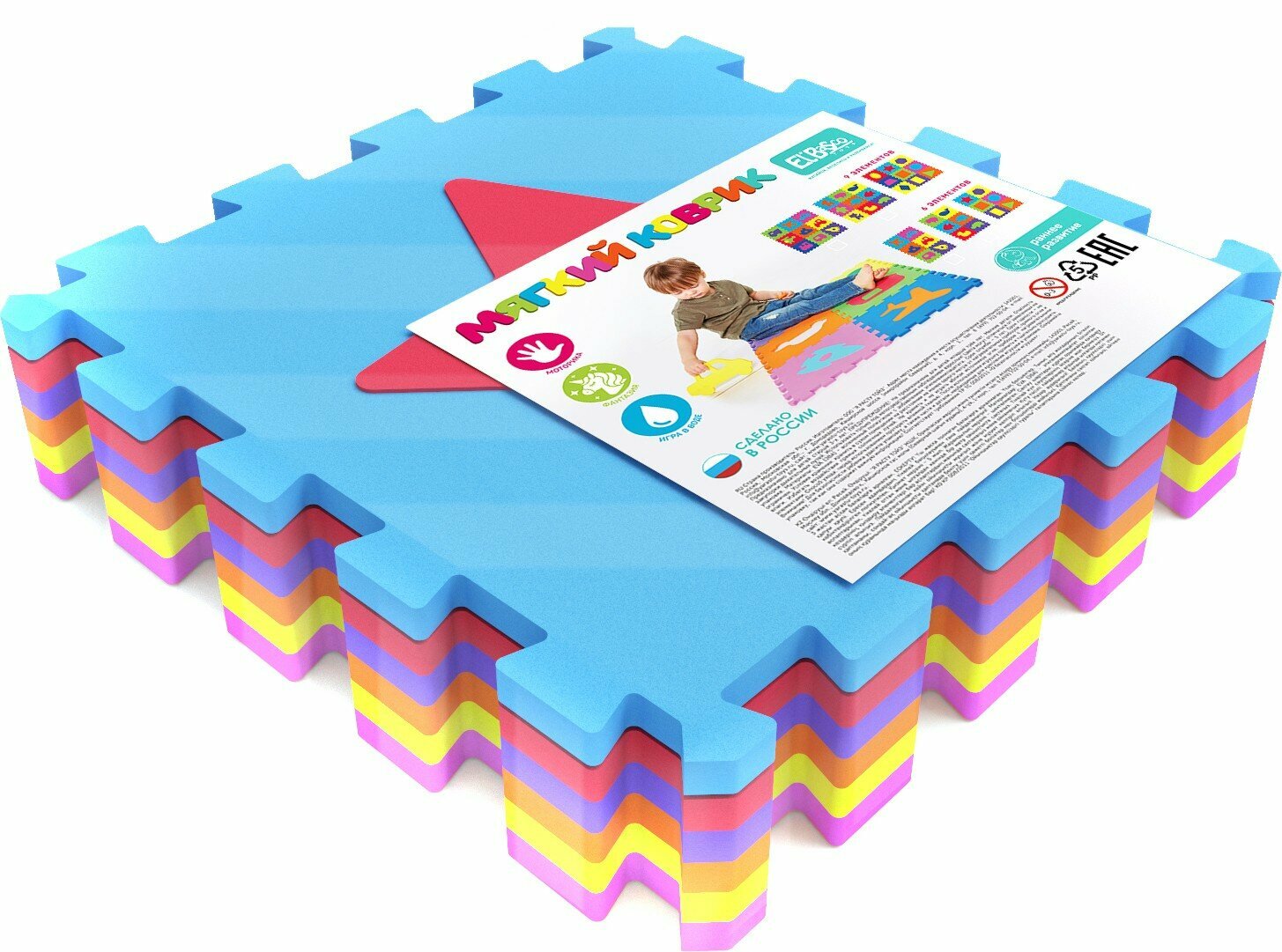 Детский коврик, состоящий из 6 элементов. С мягким ковриком ребенку будет весело и комфортно познавать мир. Коврик приятный на ощупь и не боится воды, состоит из безопасного материала ЭВА. Коврик 5в1 можно использовать в качестве напольного покрытия, собирать в куб, изучать цвета и геометрические фигуры, купаться в ванной, а также тренировать зрительное восприятие, логику и моторику.