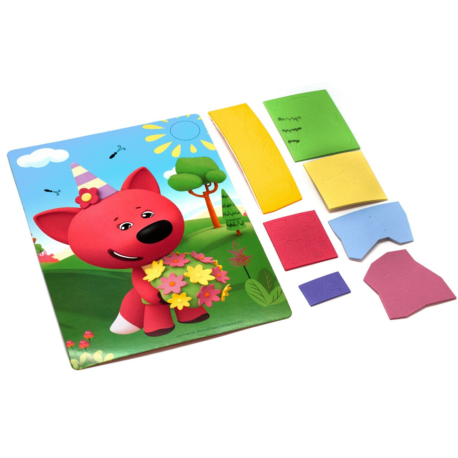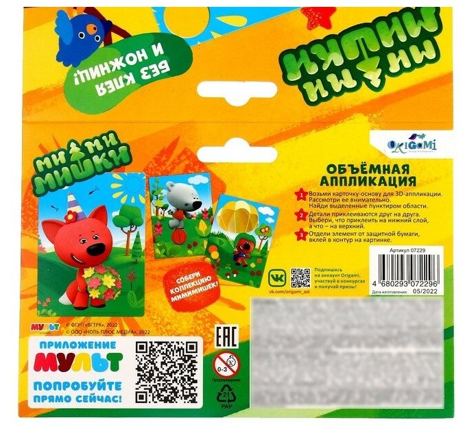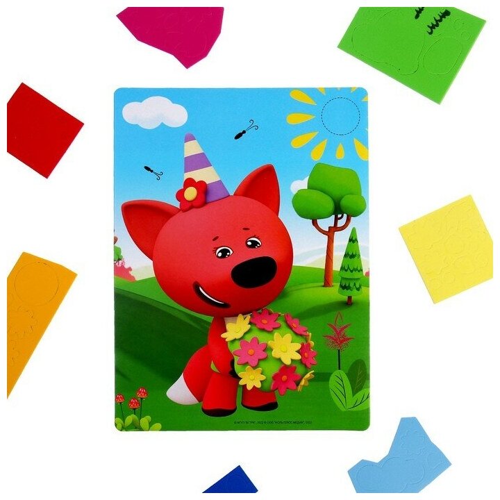 Любимые герои мультфильма "МиМиМишки" приглашают юных друзей сделать яркую 3D-аппликацию из мягкого материала EVA! В наборе есть всё необходимое для создания поделки: картинка-основа из картона и мягкие самоклеящиеся детали 7 цветов. Наклейте детали на картинку в несколько слоев по пунктирным линиям. Такое увлекательное и полезное занятие отлично развивает пространственное мышление, логику и мелкую моторику. А готовой работой можно украсить детскую комнату.