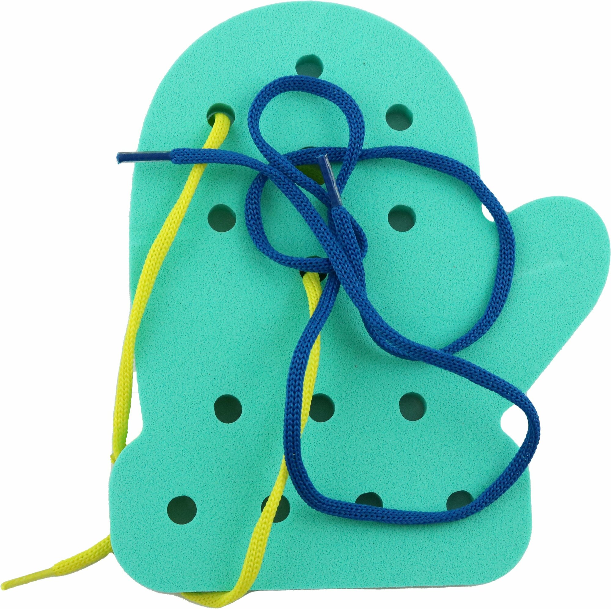 Шнуровка выполнена из мягкого и яркого материала ЭВА. Элементы игры имеют крупные отверстия для того, чтобы ребенку было удобно шнуровать.