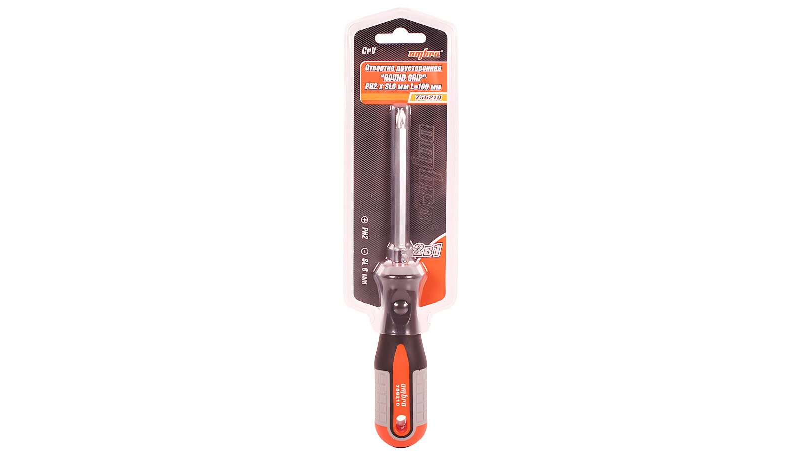 Отвертка стержневая двусторонняя ROUND GRIP OMBRA Размер: РН2,SL6x100 мм Применяются со всеми видами крепежа, имеющего врутренний рабочий профиль РН (крест). Намагниченный наконечник. Хромованадиевая сталь.