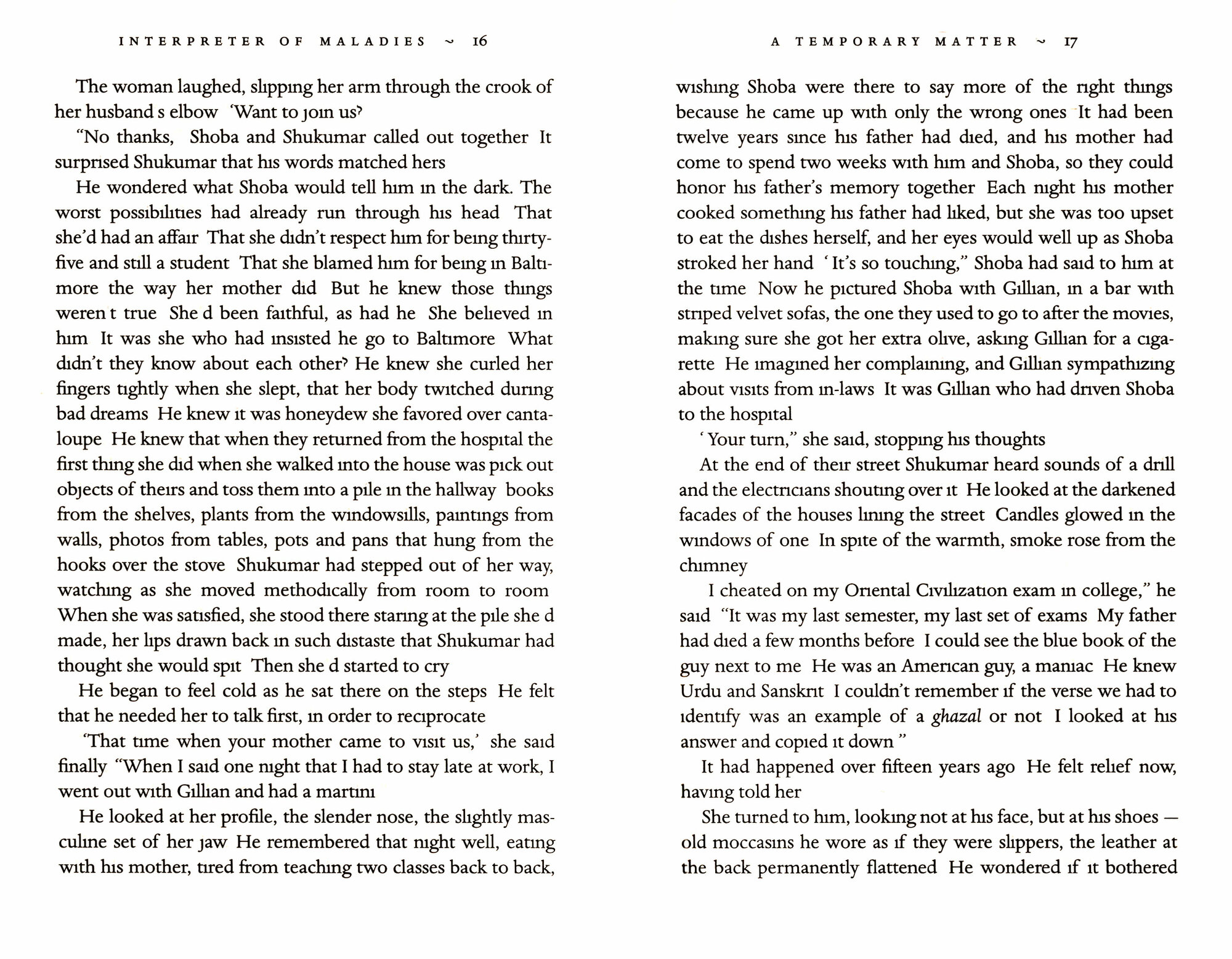 Whether set in Boston or Bengal, these sublimely understated stories, imbued with umour and subtle detail, speak with eloquence to anyone who has ever felt the yearnings of exile or the emotional confusion of an outsider.