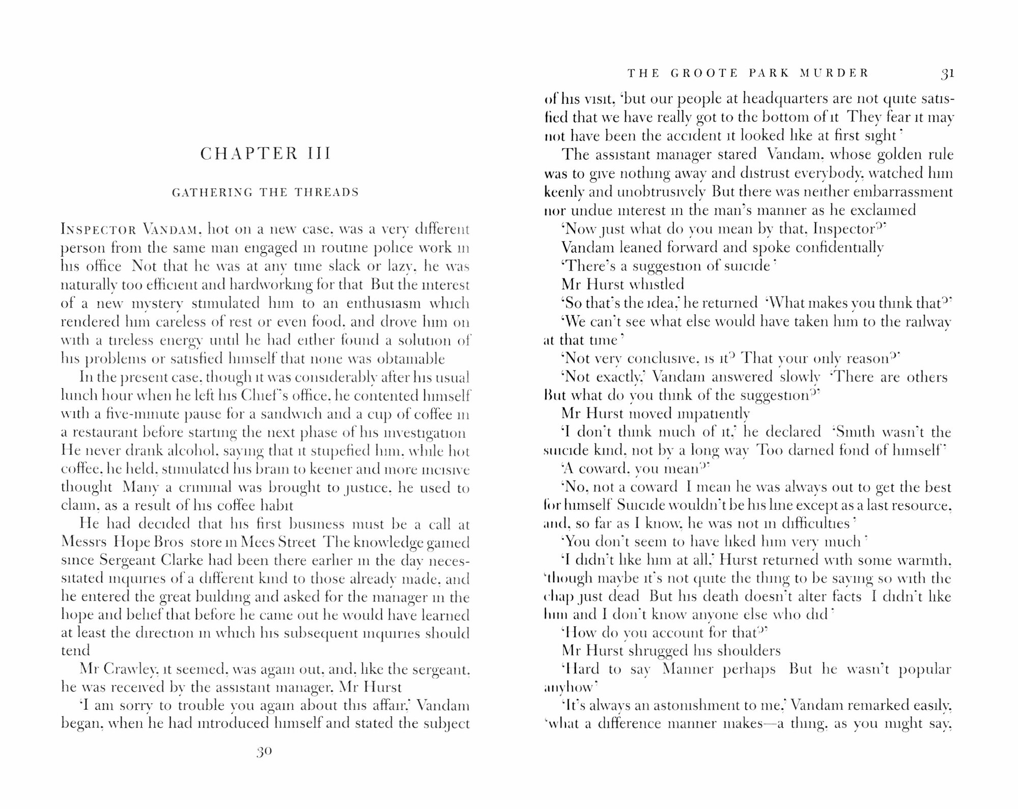 The Groote Park Murder was the last of Freeman Wills Crofts’ standalone crime novels, foreshadowing his iconic Inspector French series and helping to cement his reputation (according to his publishers) as ‘the greatest and most popular detective writer in the world’. Like The Cask, The Ponson Case and The Pit-Prop Syndicate before it, here were a delightfully ingenious plot, impeccable handling of detail, and an overwhelming surprise ‘curtain’ from a masterful crime writer on the cusp of global success.