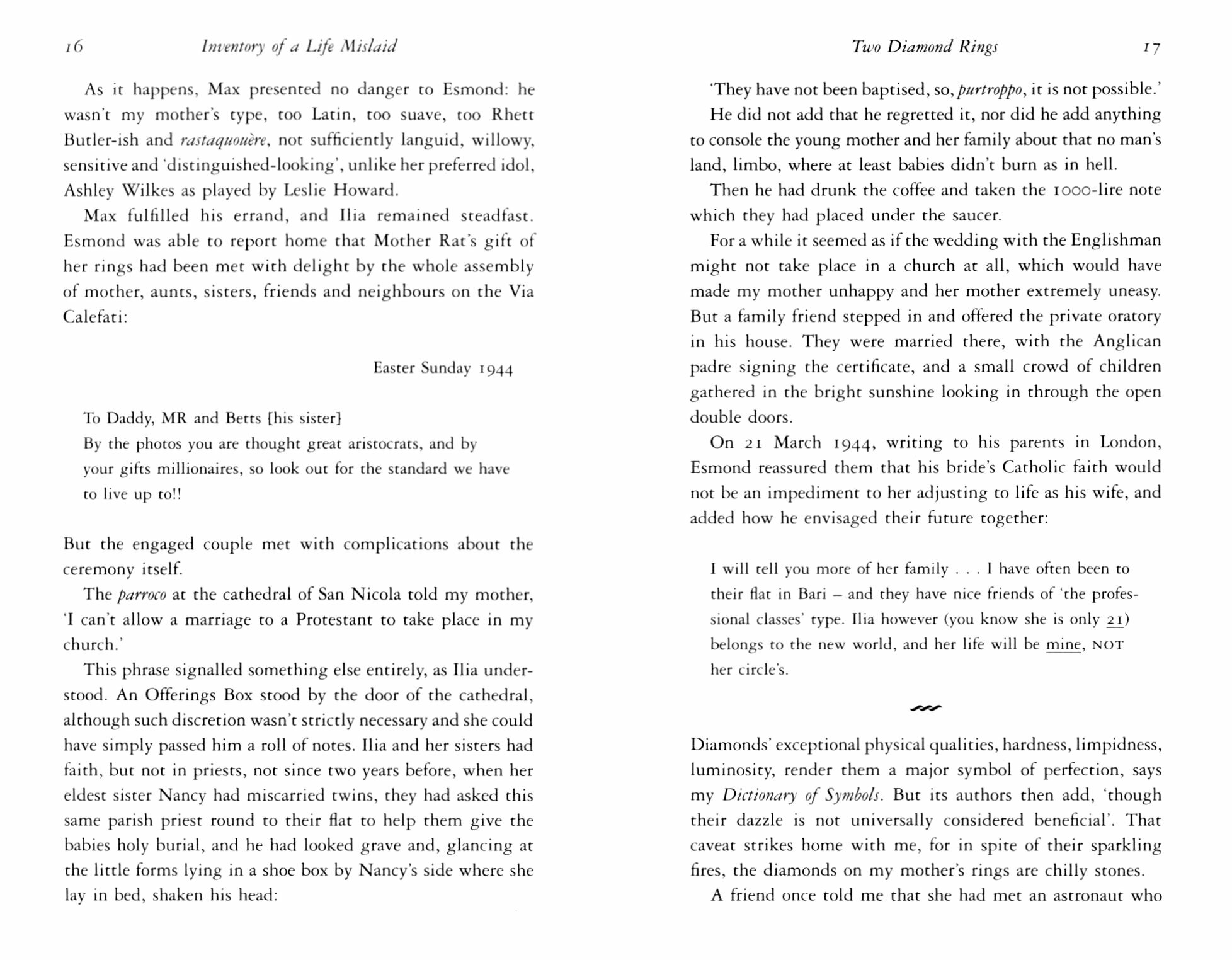 Inventory of a Life Mislaid follows Marina Warner’s beautiful, penniless young mother Ilia as she leaves southern Italy in 1945 to travel alone to London. Her husband, an English colonel, is still away in the war in the East as she begins to learn how to be Mrs Esmond Warner, an Englishwoman.