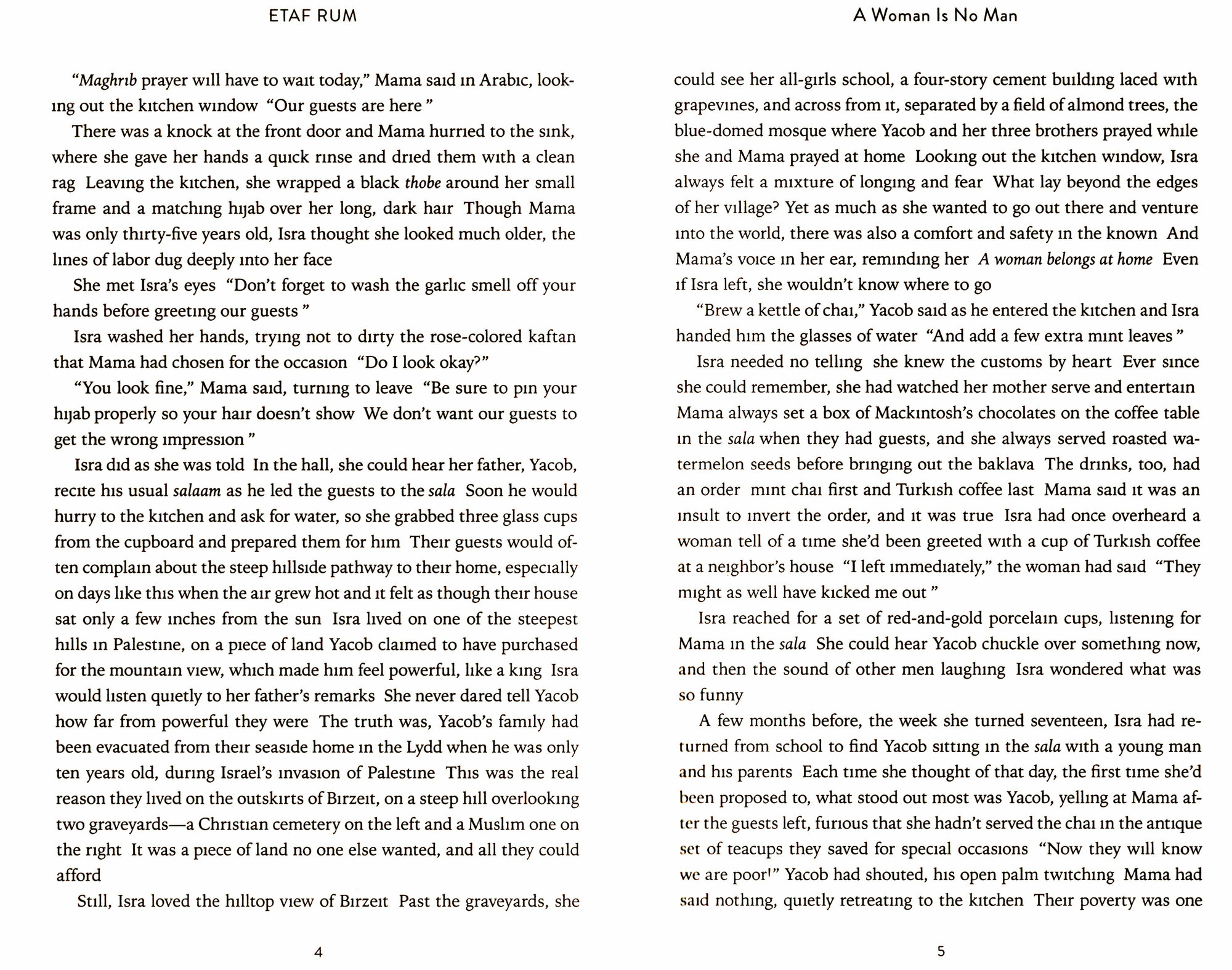 Set in an America at once foreign to many and staggeringly close at hand, A Woman Is No Man is a story of culture and honour, secrets and betrayals, love and violence. It is an intimate glimpse into a controlling and closed cultural world, and a universal tale about family and the ways silence and shame can destroy those we have sworn to protect.