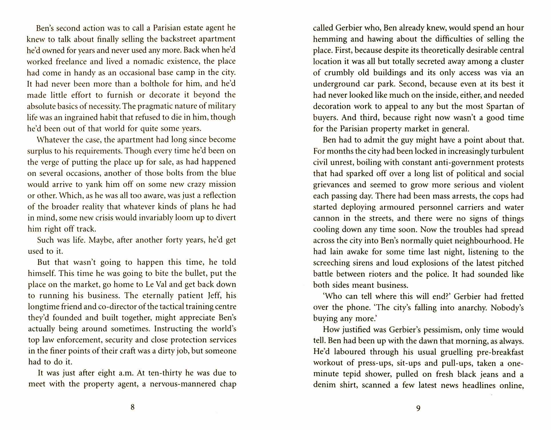 Following a chance encounter with a terrified young woman in the streets of Paris, former SAS soldier Ben Hope finds himself hurled into a violent new mission involving murder, international terrorism and stolen historic artifacts. A mission made even more perilous by the reappearance of an old enemy from Ben's military past. A man he knew and fought years ago. A man he thought was dead.