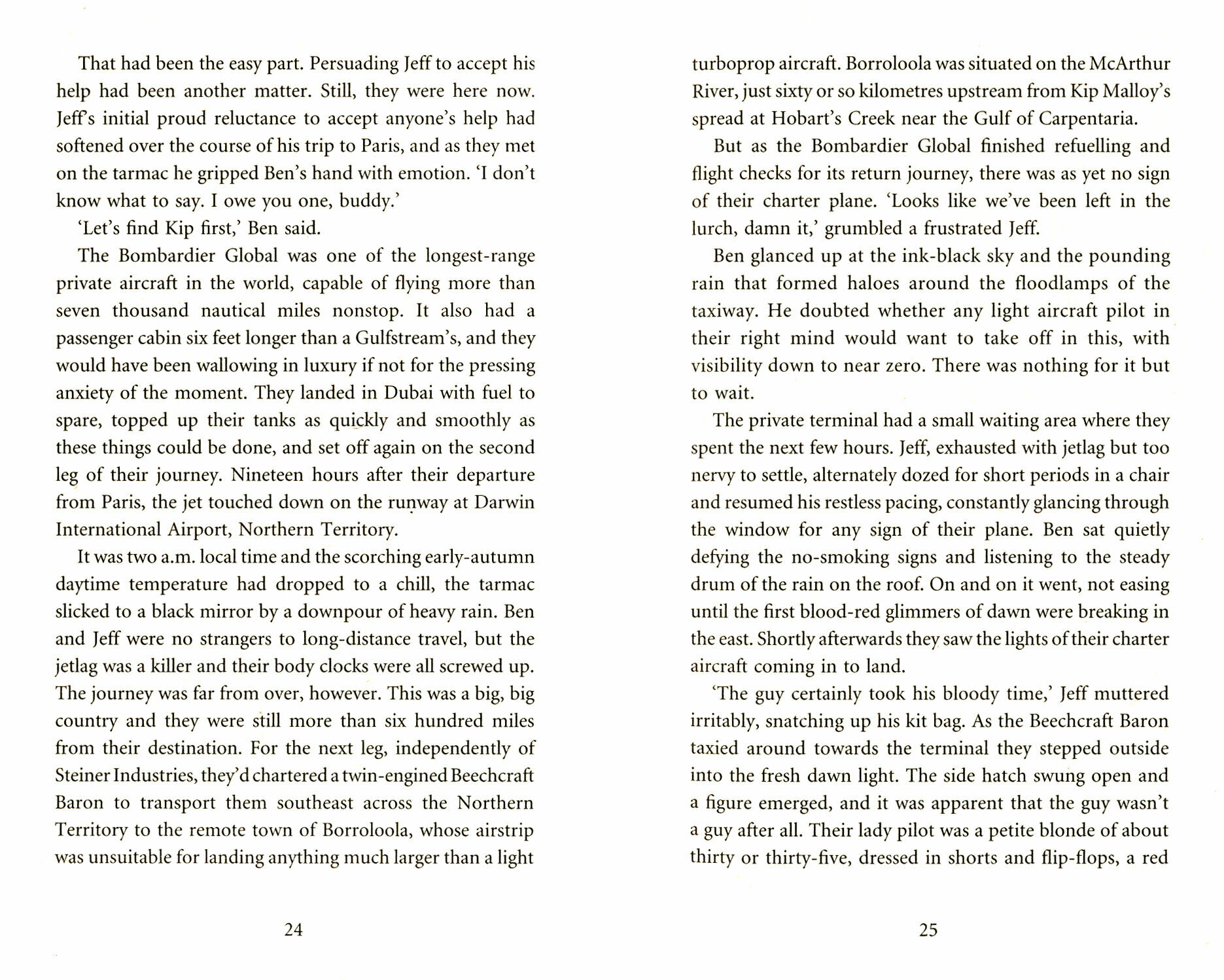 Under the fierce heat of the Australian outback, the laws of nature serve a rough justice. When a man vanishes deep in the Northern Territory, local police write it off. But his family suspect otherwise - and when the call for help goes out, Ben Hope and Jeff Decker are there to hear it.