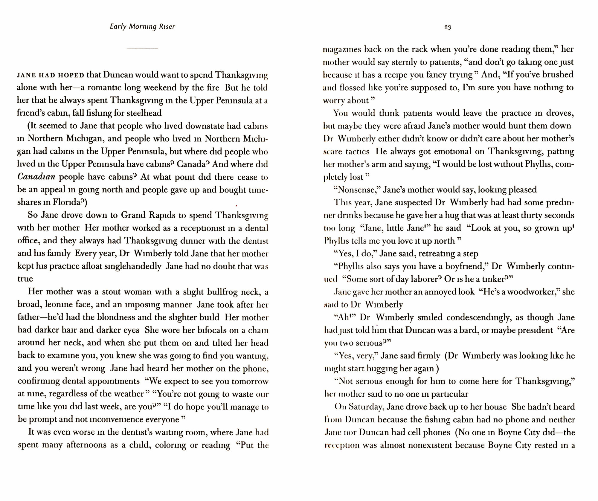 Jane easily falls in love with Duncan: he's charming, good-natured, and handsome. He has also slept with nearly every woman in Boyne City, Michigan.