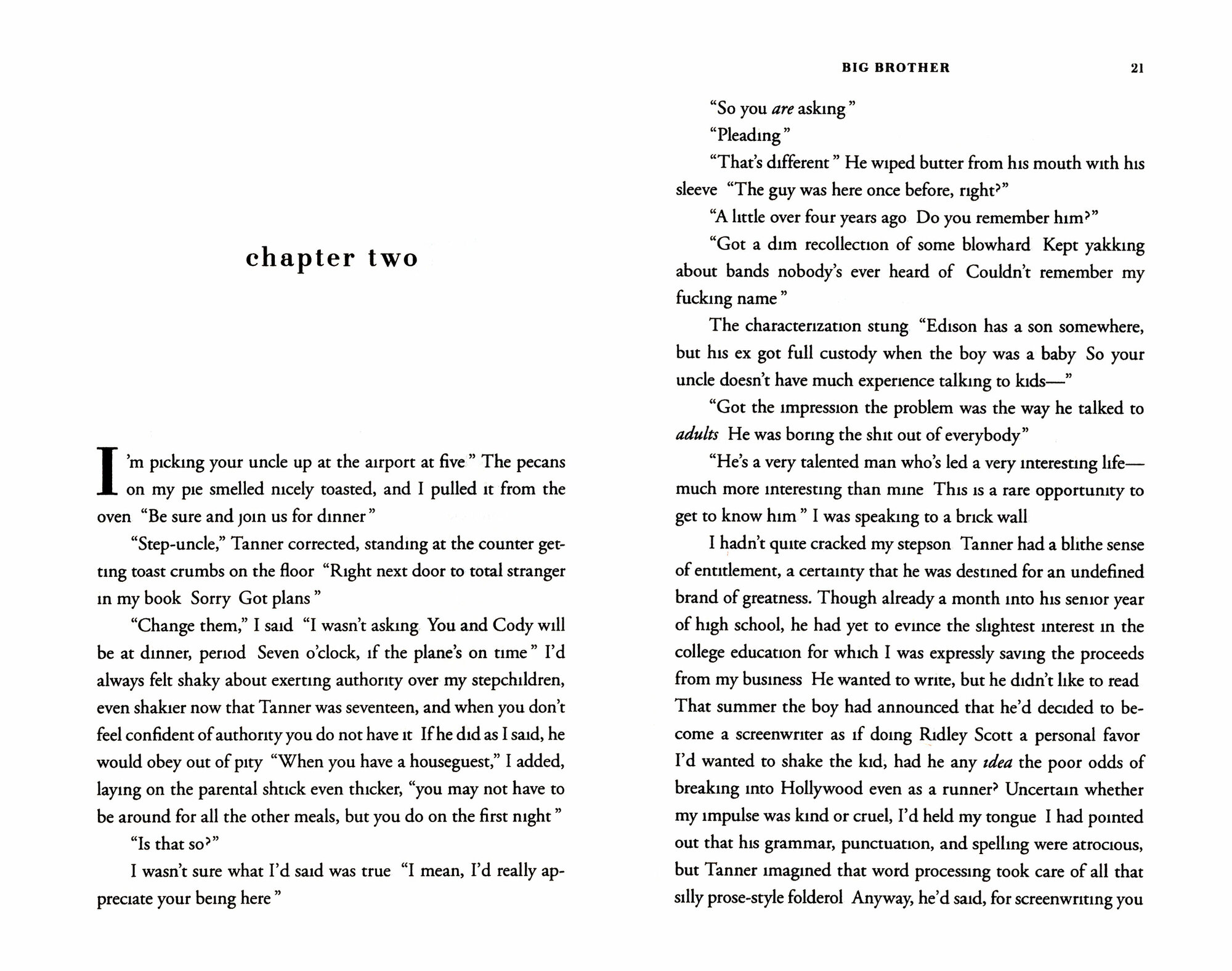 Rich with Shriver's distinctive wit and ferocious energy, Big Brother is about fat: why we overeat and whether extreme diets ever really work. It asks just how much sacrifice we'll make to save single members of our families, and whether it's ever possible to save loved ones from themselves.