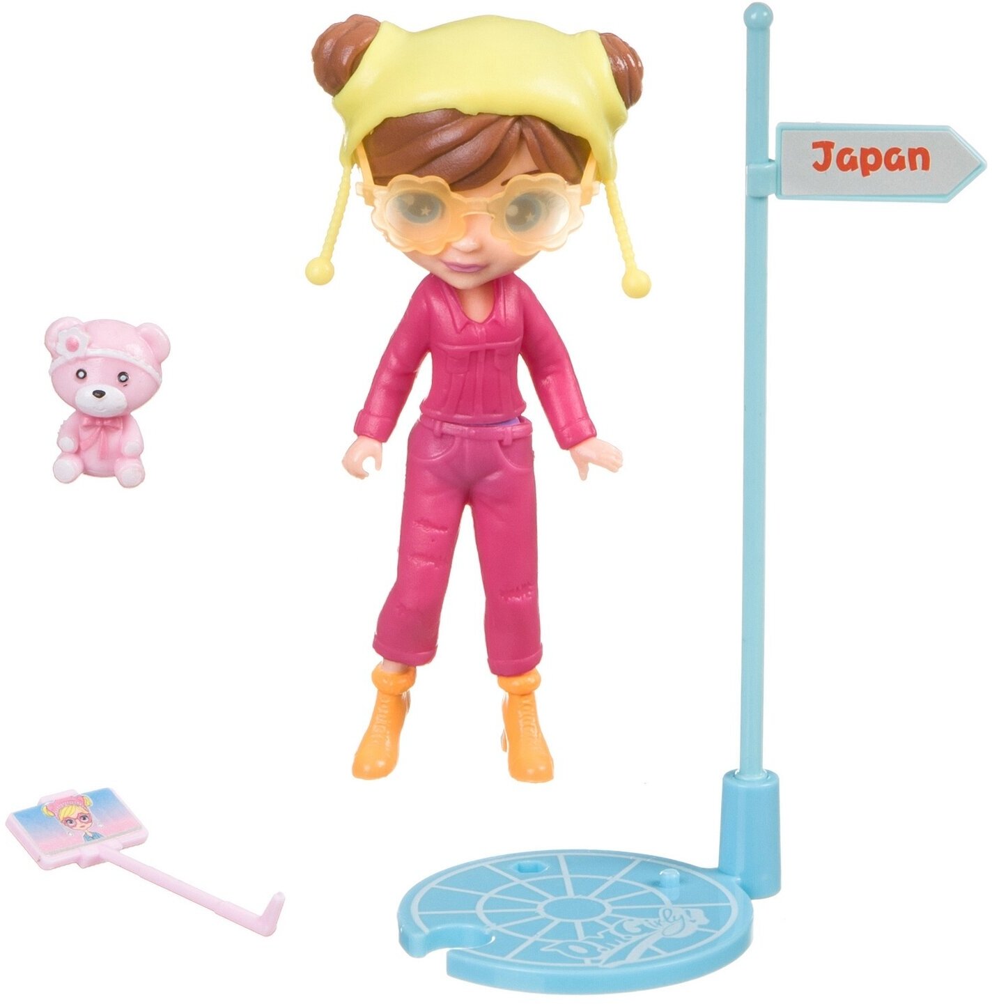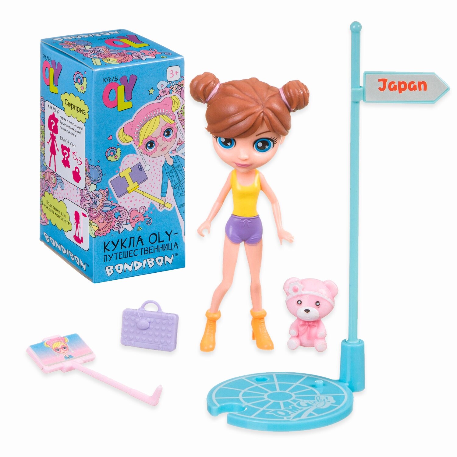 В комплекте: куколка-шатенка в розовом комбинезоне, подставка для куклы, фигурка медвежонка, сумочка, сэлфи-палка и другие аксессуары. Данный игровой набор подойдет для различных сюжетно-ролевых игр. Собери всю серию кукол OLY!