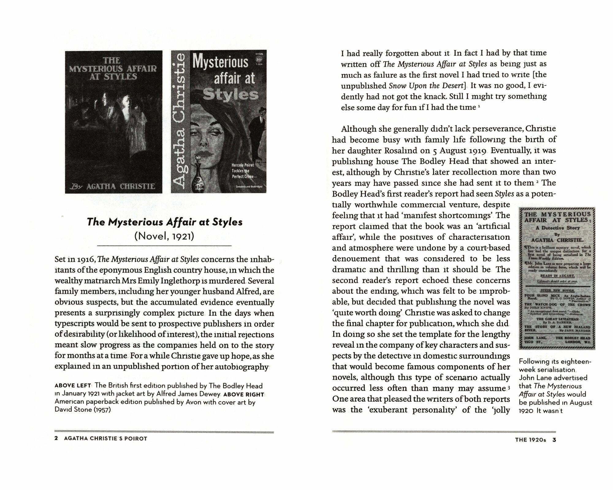 Poirot has had near-permanent presence in the public eye ever since the 1920 publication of The Mysterious Affair at Styles. From character development, publication history and private discussion concerning the original stories themselves, to early forays on to the stage and screen, the story of Poirot is as fascinating as it is enduring.