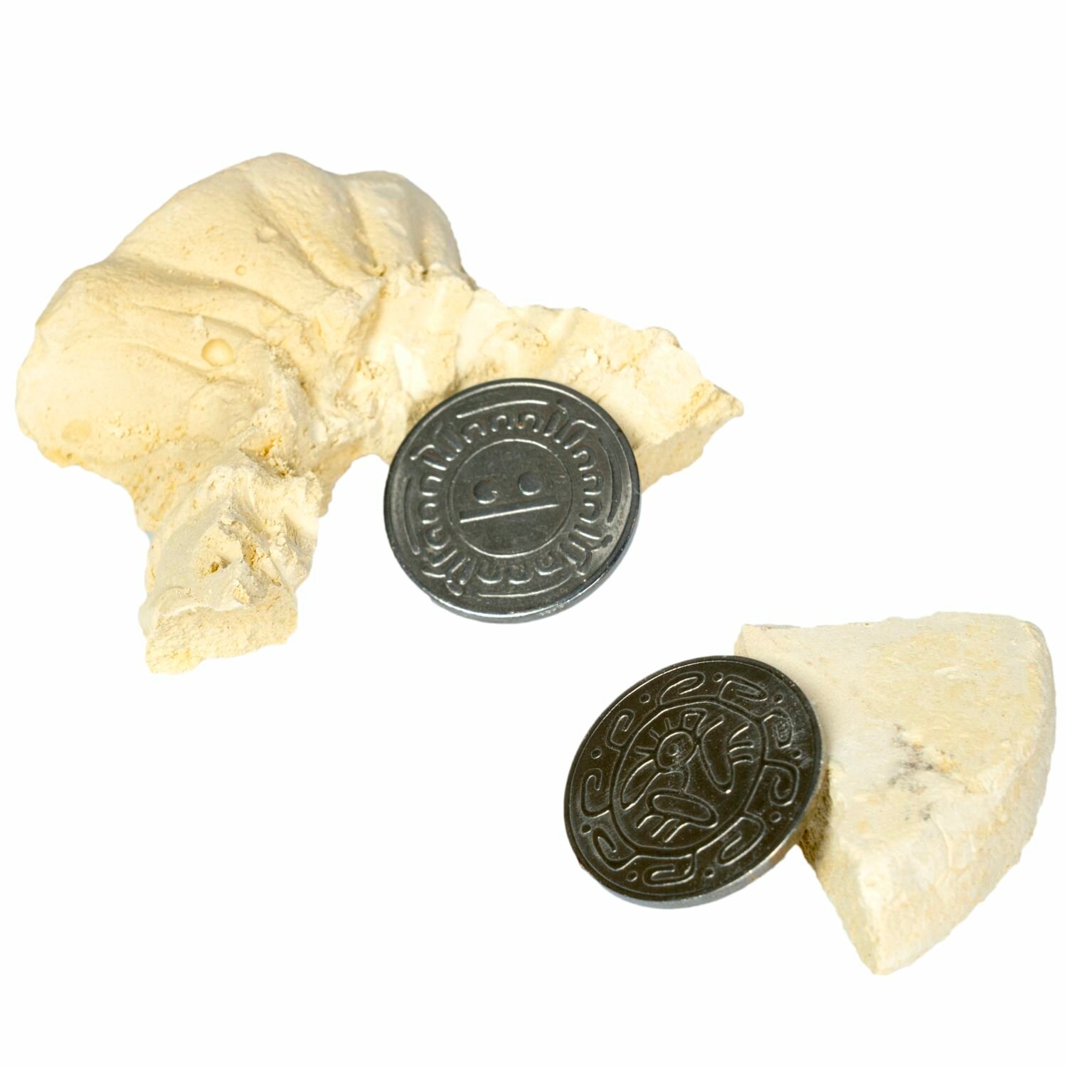 Внутри блока для раскопок, выполненного в виде мешочка, Вы найдете настоящий артефакт - монетки племени Майя.