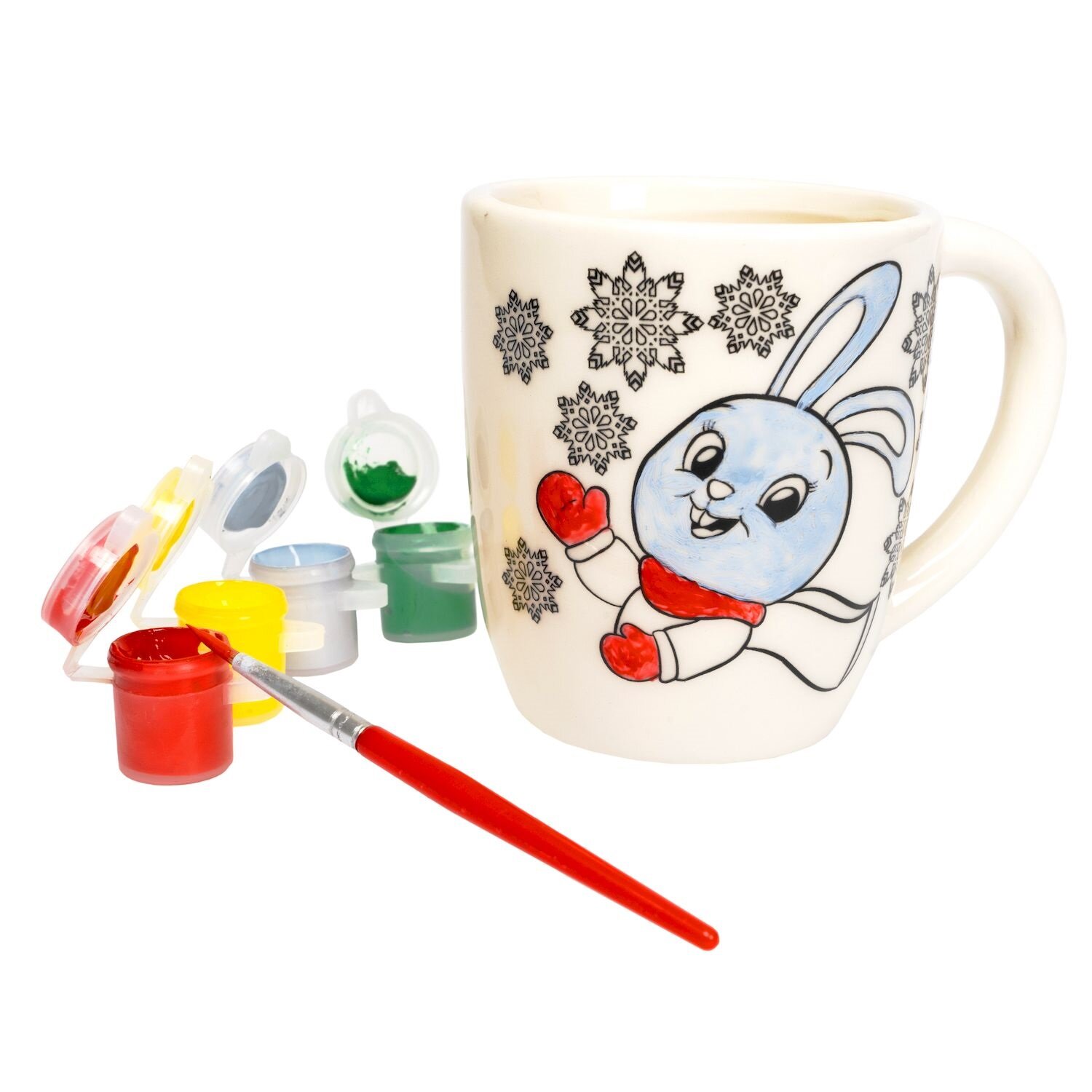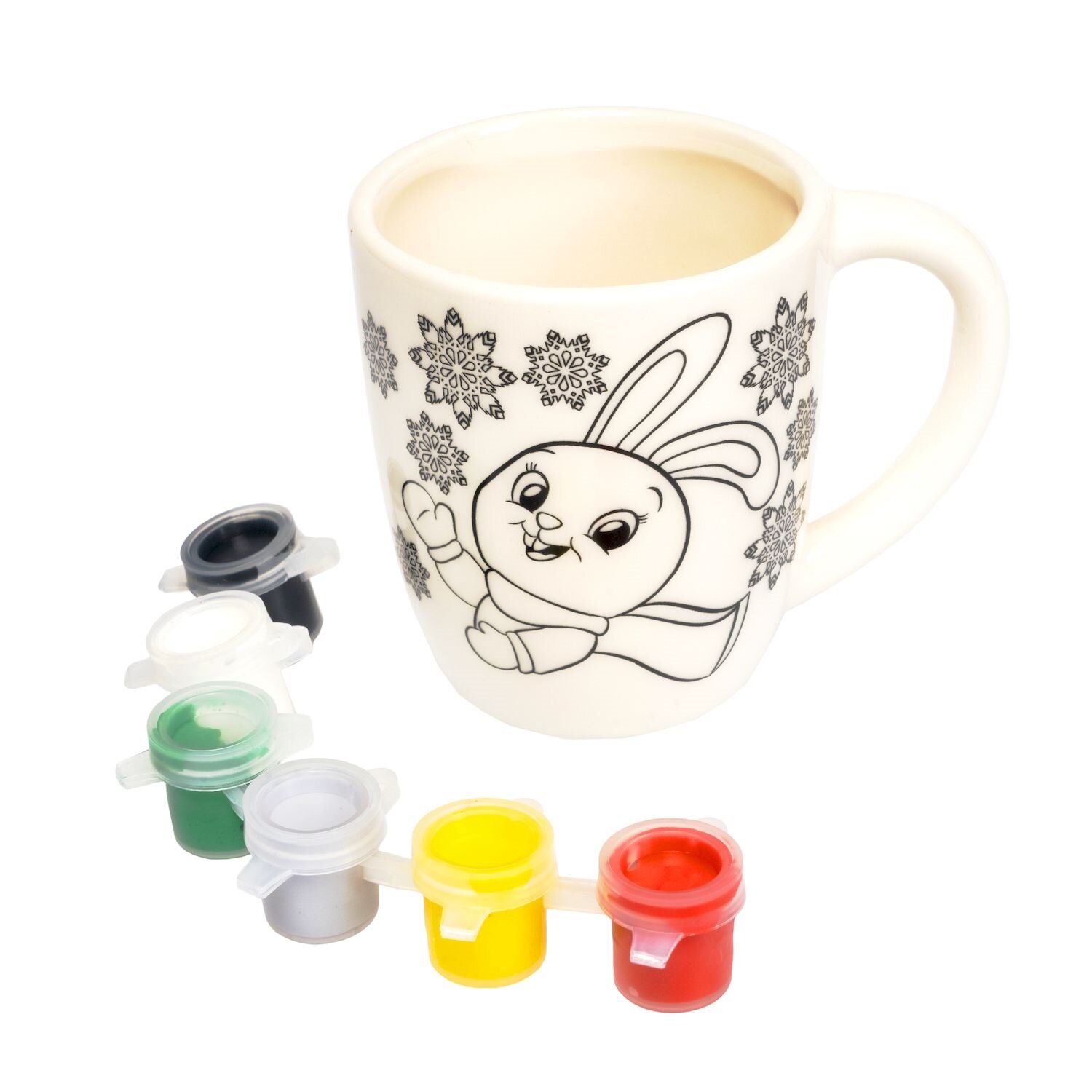 Раскрась веселого зайчика на кружке своими руками!