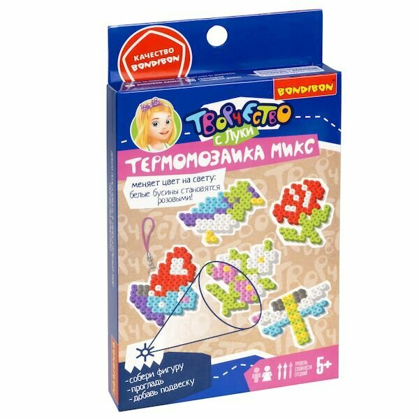Это необыкновенная Термомозаика "Летний микс" меняет цвет на свету. Белые бусины становятся розовыми! С набором для творчества от Bondibon легко создать необычные брелоки - символы любимого времени года! Кроме развития фантазии, с помощью бусин дети учатся распознавать цвета, обращаться с мелкими предметами, различать формы и считать. Термобусины необходимо собрать по трафарету на планшете и прогладить через кальку утюгом. Обработка горячим расплавит бусинки и скрепит их между собой. Фигурка остынет и с ней можно играть! Или сделать чудесный брелок, прикрепив подвеску. И лето всегда будет с тобой! Необычные термобусины белого цвета на ярком солнце становятся розовыми. Чем ярче свет, тем насыщеннее оттенок. В комплекте: набор термобусин, планшет, калька, пинцет, 5 цветных схем - стрекоза, птичка, цветы, бабочка, роза, подвески для брелоков. Уровень сложности - средний. 5+. Творчество с Луки Термомозаика" ХОББИ " - это отличный способ для ребенка провести время с интересом и пользой!