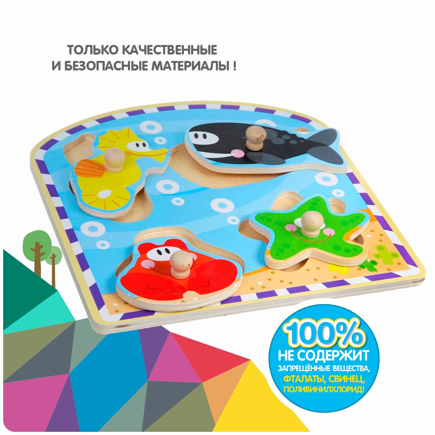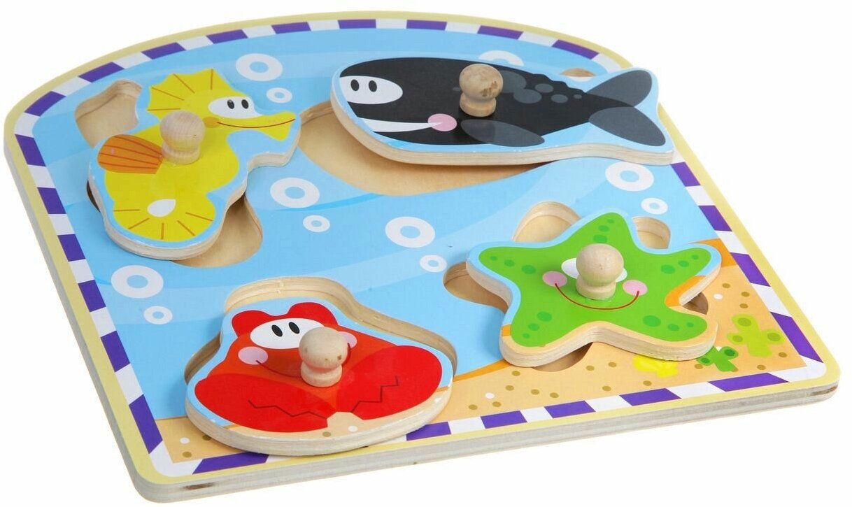 Деревянная рамка-вкладыш серии Baby You от Bondibon является прекрасной игрушкой, предназначенной для развития мелкой моторики и воображения малышей. Она изготовлена из экологически чистого материала - древесины, абсолютно безопасна для маленьких детей и не токсична. Рамка-вкладыш с 4 фигурками Морских животных способствует развитию координации малыша, расширяет представление ребенка о морских обитателях, учит выделять связи между явлениями и предметами, развивает логическое мышление. С ее помощью ребенок узнает, как выглядят кит, морская звезда, морской конёк и краб, научится различать цвета: красный, зеленый, жёлтый, оранжевый, голубой, белый, чёрный. Подобная рамка станет прекрасным подарком для тех родителей, которые ценят не только интересные, но и полезные игрушки.