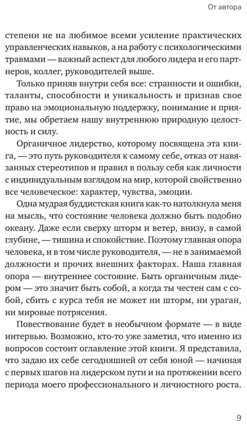 Из книги вы узнаете, почему важно найти собственный стиль управления и как это сделать в хорошие и непростые времена; как развивать авторитет и иметь возможность формировать свой райдер как управленца; как осознанно пройти внутреннюю трансформацию и усложнение логики мышления лидера; почему органичное развитие лидера способствует масштабным изменениям команды и компании. А также найдете набор инструментов для построения развивающих отношений с коллегами, друзьями и членами семьи. И самое важное - с самим собой. Ведь, как ни странно, именно в этих отношениях кроются главные ответы на управленческие вопросы.