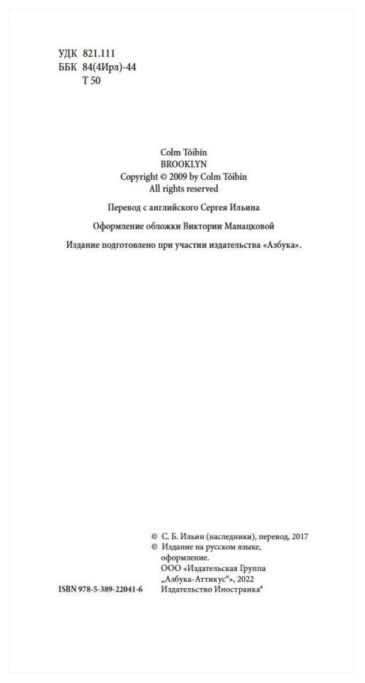 Книга: Бруклин (Колм Тойбин); Азбука, 2022