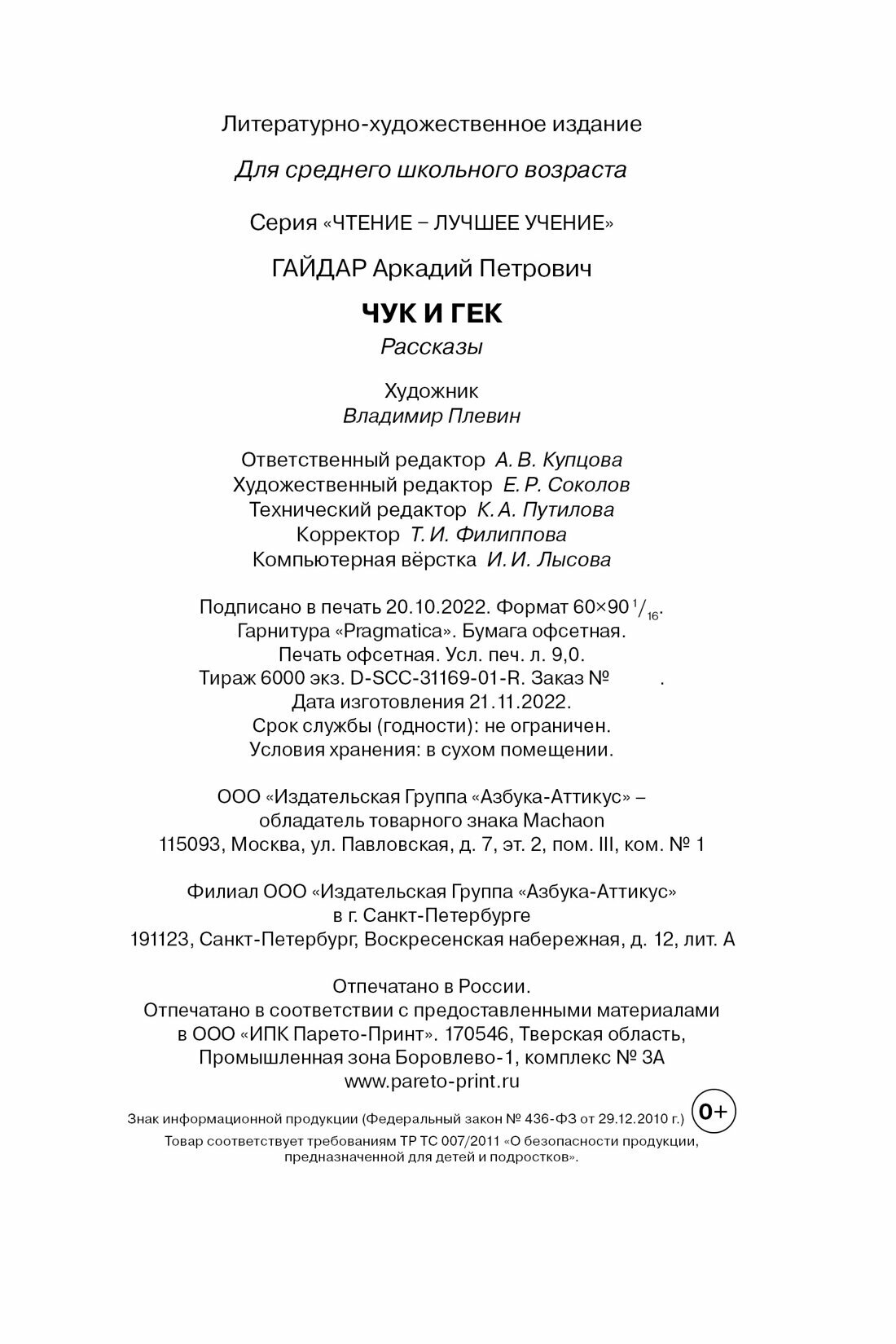 Эту книгу купили из-за обложки, так как посмотреть успели фильм и детям понравилось оформление. В книге 4 рассказа и кратко о жизни писателя, его творчестве, что тоже понравилось детям, им интересно было читать. Страницы белые, тонкие правда, твёрдый переплёт, шрифт крупный, удобный для чтения детьми, рассказы замечательные и особенно ждали Чук и Гек, который, конечно отличается немного от фильма, но не смотря на это очень хорошо написан.
