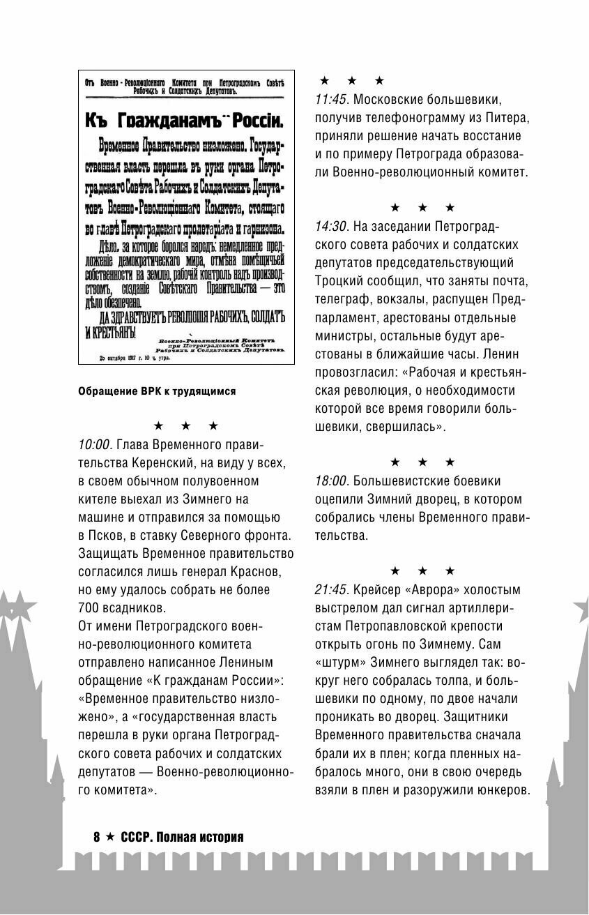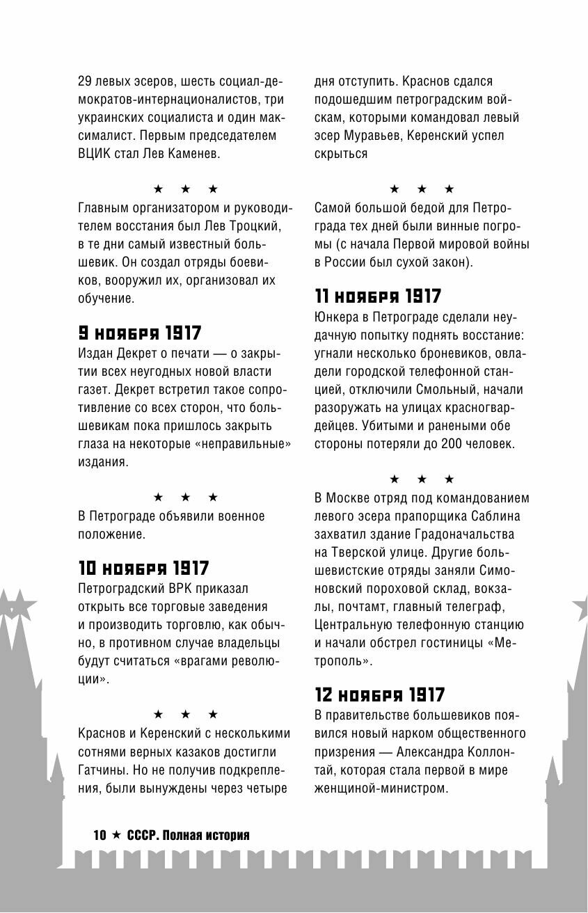 Книга содержательная и интересная книга. Затрагивает все стороны политической и обыденной жизни СССР. В книге множество фактов о людях благодаря которым страна развивалась, об их идеях, о отношениях страны с другими государствами. Очень понравился фрагмент о том как зарождалась страна, читать было любопытно. Из книги узнала много имен и датт в жизни страны СССР. Советую всем.