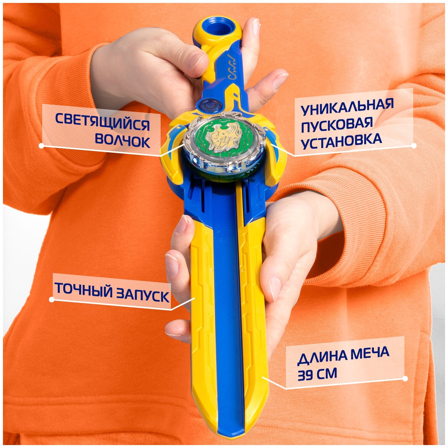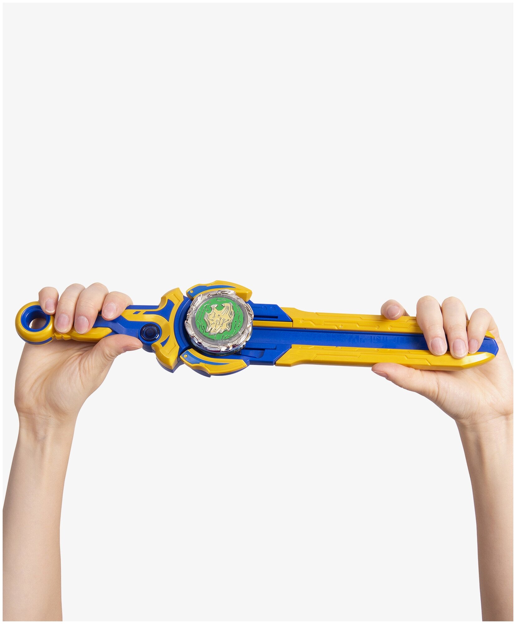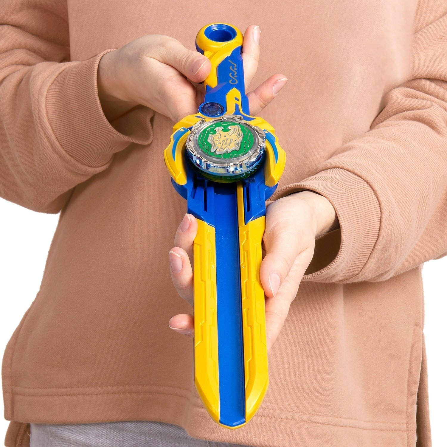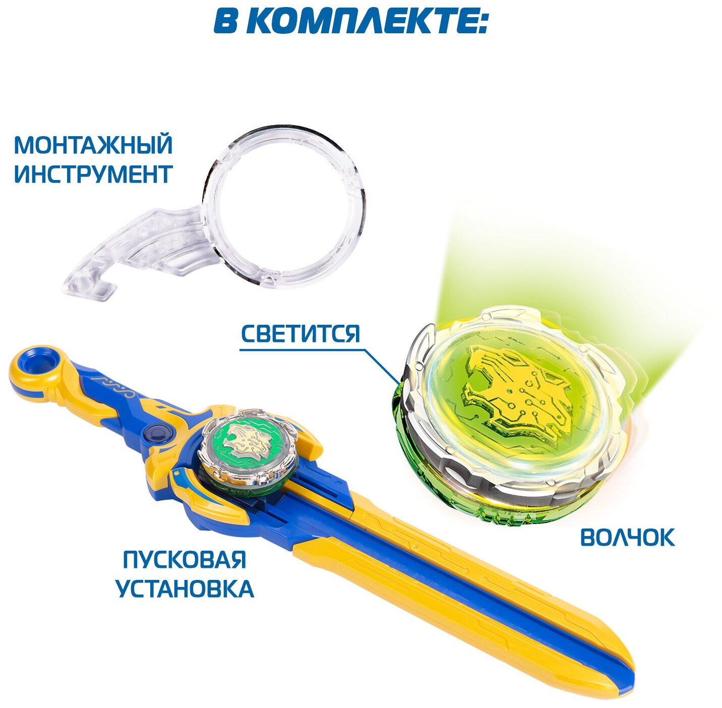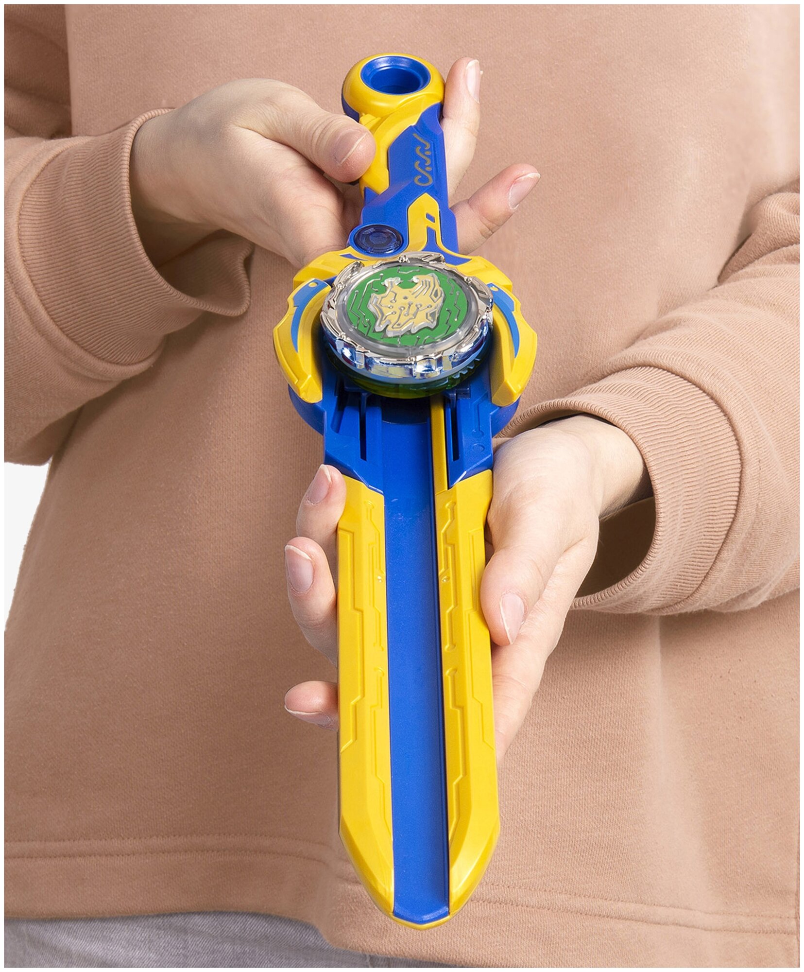 Он помогает точнее запустить блейд на арену. Меч не только пусковая установка, но и монтажный инструмент. В комплект входит облегченный волчок для скоростного запуска. Его можно пересобирать: все элементы взаимозаменяемы внутри линейки Эпик Лончер. Вставь Надо в специальное отверстие до щелчка, раскрути волчок с помощью ножен, нажми кнопку запуска. Блейд Эпик Лончер Стандарт светится при вращении и нажатии на аватар.