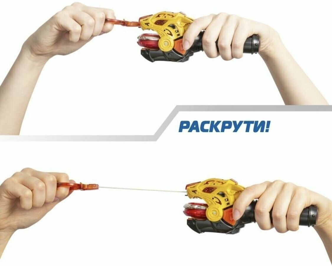 Набор состоит из пусковой установки Эпик Лончер, металлического волчка, монтажного инструмента.