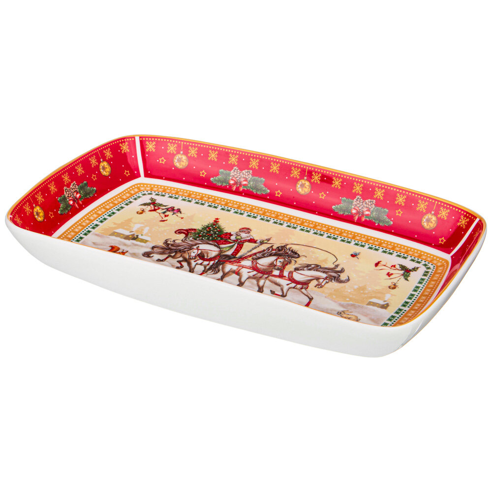Стильное сервировочное блюдо дополнит убранство праздничного стола, впишется в любой интерьер. Фарфоровое блюдо для сервировки — отличный вариант подарка родным и близким, друзьям, коллегам на Новый год, Рождество, День Рождения и другие праздники. Используйте посуду для подачи фруктов, ягод, закусок, сладостей и десертов. — Эстетичность блюда из фарфора делает закуски более аппетитными и притягательными. — Посуда экологична и безопасна. Сохраняет первозданный вид даже при ежедневном применении. — Устойчива к потертостям, царапинам и пятнам. Легко отмывается обычными моющими средствами. — Не впитывает запахи.Блюдо фарфоровое нуждается в бережном уходе: не используйте агрессивные химические средства для мытья и посудомоечную машину.