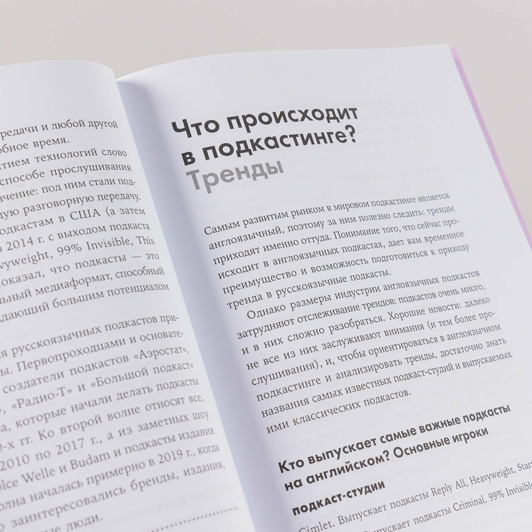 Кристина Вазовски — основательница студии «ТОЛК», выпускает подкасты на русском языке, которые входят в топ Apple Podcasts. В своей книге она рассказывает, как сделать свой проект с нуля с минимальными вложениями — от выбора оборудования, подготовки к интервью и монтажа до развития и монетизации. Не удивляйтесь, но для начала вам хватит смартфона и... носка. Вы научитесь основам сценарного дела, начнете разбираться в многообразии микрофонов и рекордеров, освоите навыки сторителлинга и даже справитесь со страхом публичных выступлений. Но если вдруг вы поймете, что не можете думать ни о чем, кроме своего подкаста, то знайте: сделать подкастинг основным источником заработка совершенно реально.