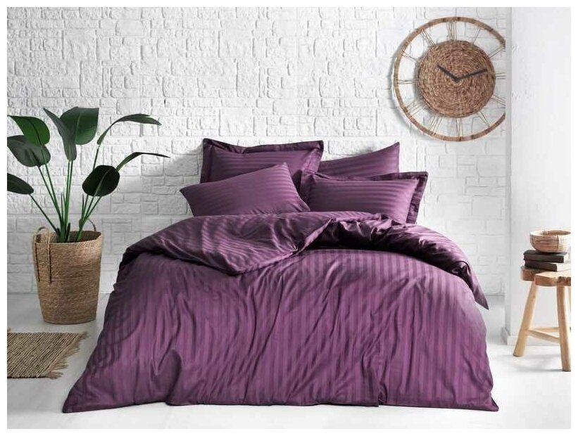 Постельное белье Jacquard banded цвет: бордовый (семейное) Tivolyo home (tivh899395) (размер: семейный)