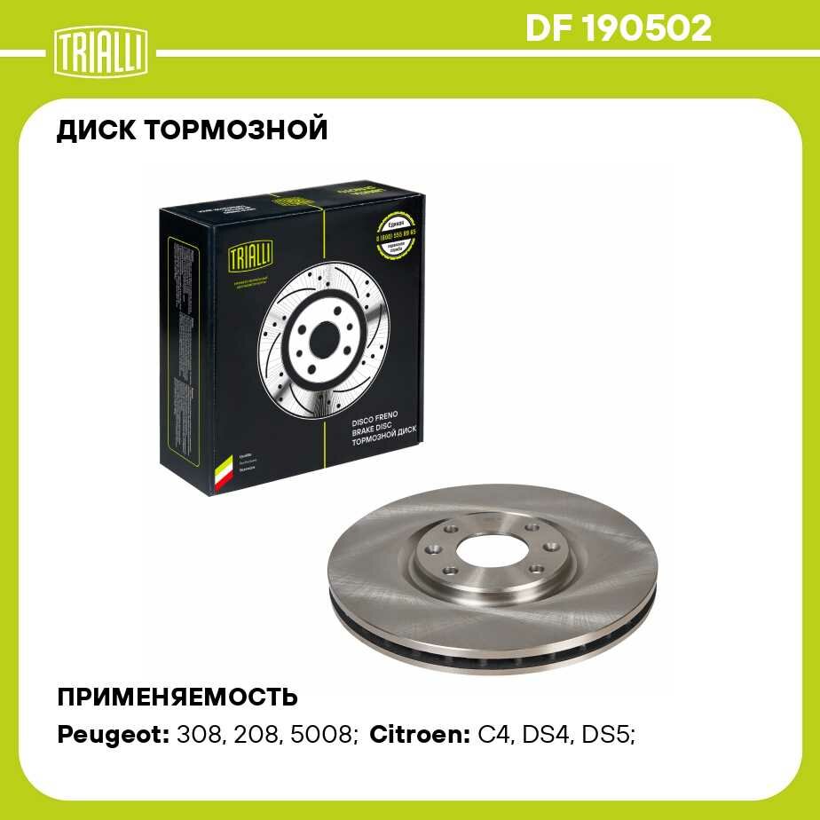 Диск тормозной для автомобилей Peugeot 308 (07-) / 208 (12-) / Citroen C4 (04-) / DS4/DS5 (11-) передний d=302 TRIALLI (DF 190502)