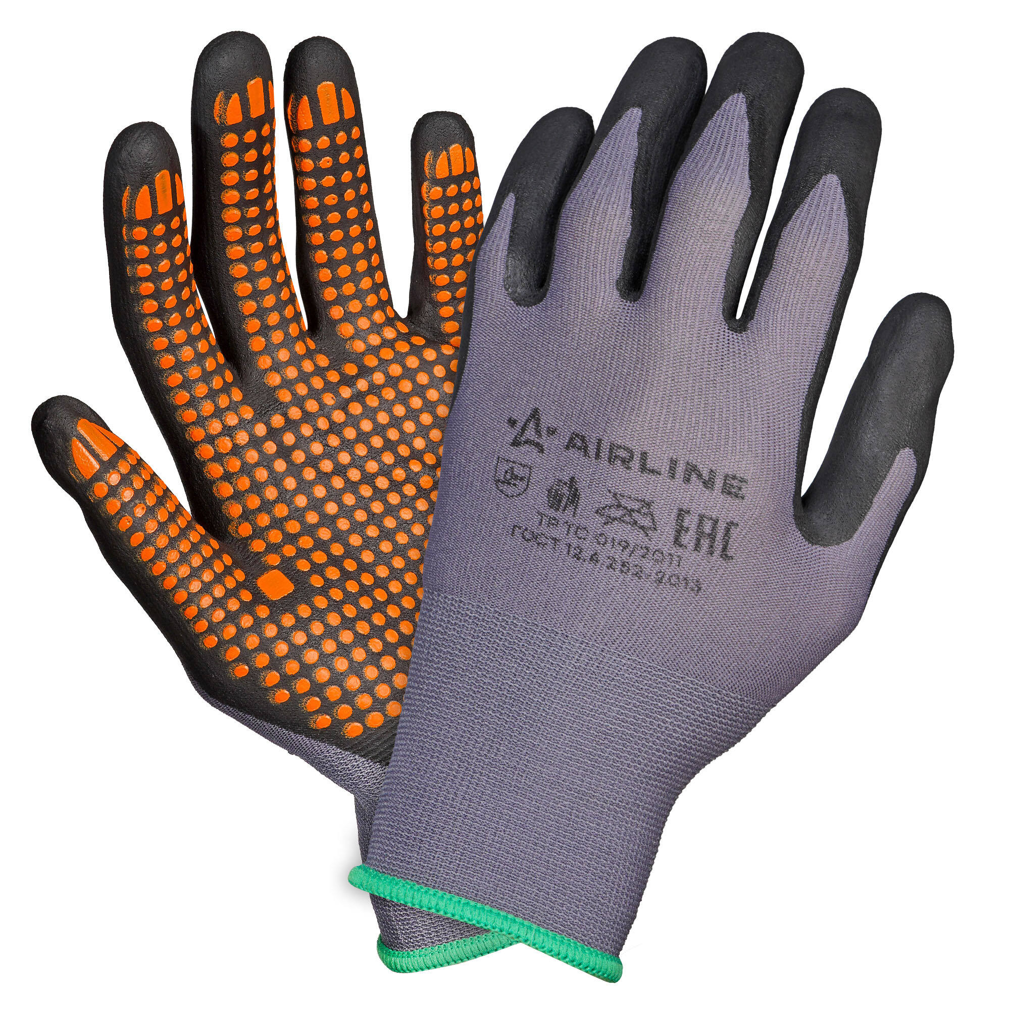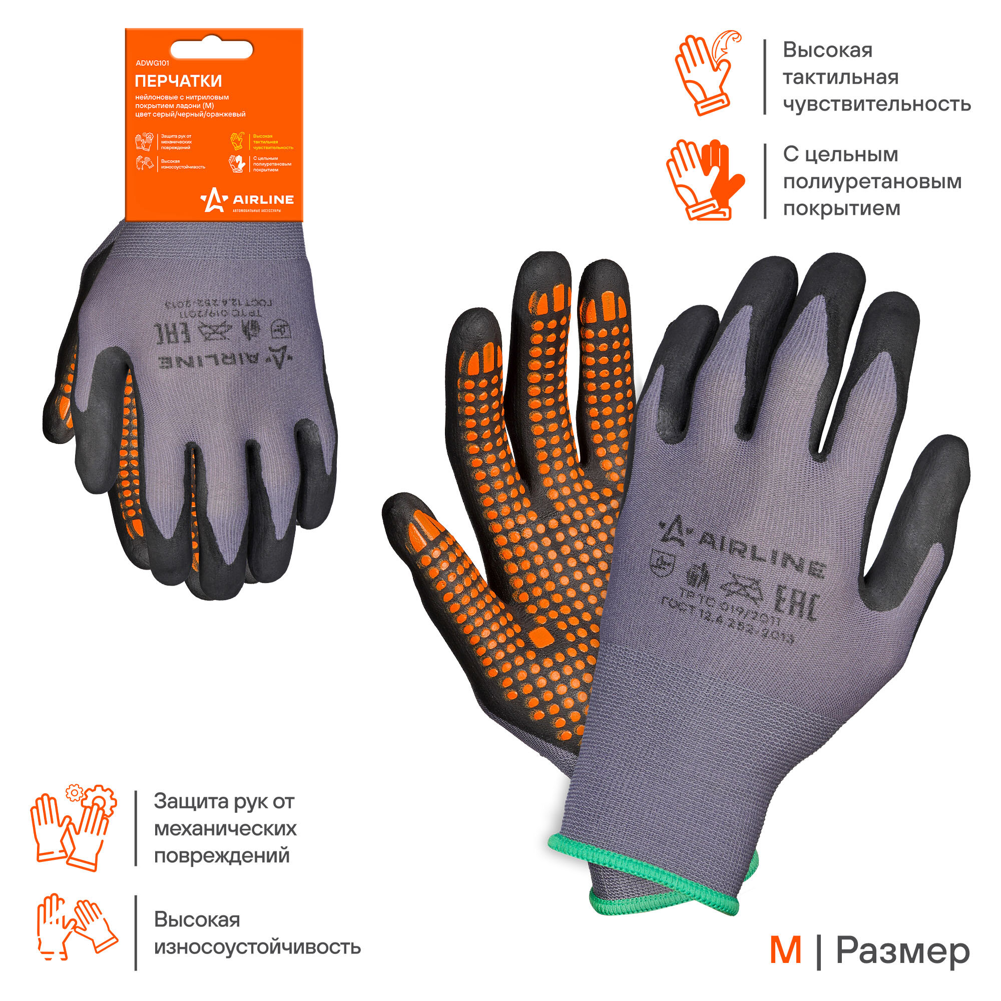 Перчатки нейлоновые с нитриловым покрытием ладони (М) сер./черн./оранж. AIRLINE ADWG101 (размер: 8)