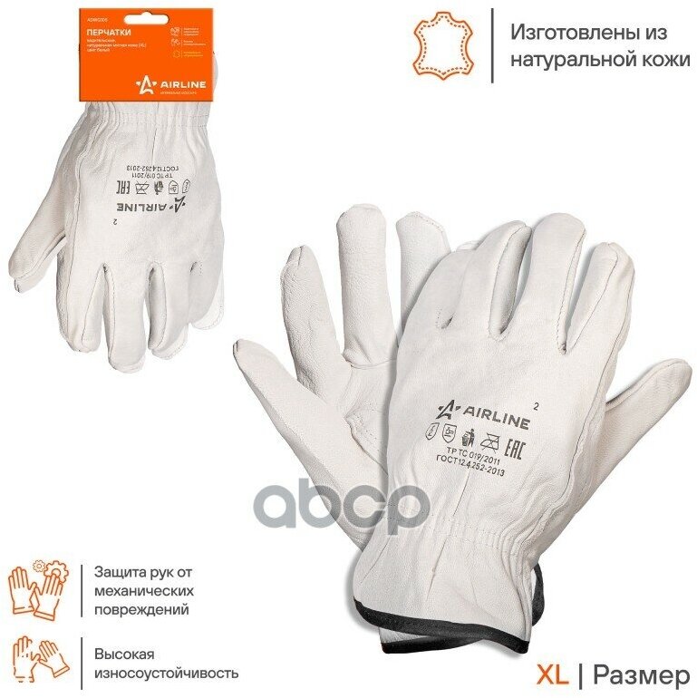 Перчатки водительские натуральная мягкая кожа (XL) белые AIRLINE (ADWG105)