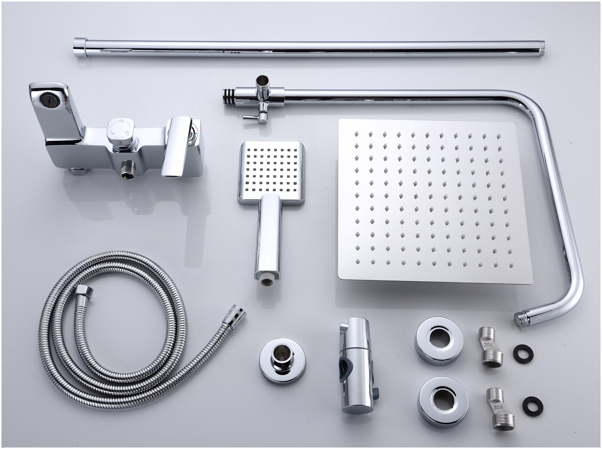 | ВКоробке | Душевая стойка - 1 шт. Верхний душ - 1 шт. Лейка - 1 шт. Шланг - 1 шт. Смеситель - 1 шт. Эксцентрик - 2 шт. Инструкция - 1 шт. |