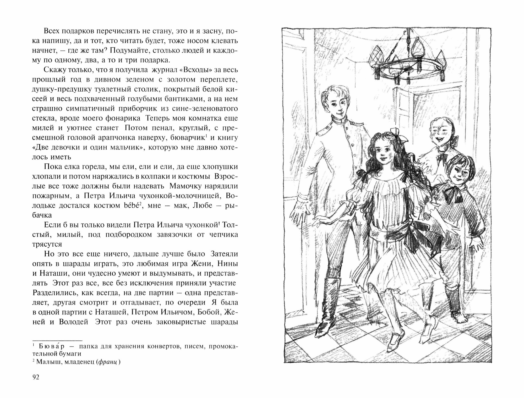 Муся продолжает быть собой: милой, очаровательной, живой, остроумной, в меру проницательной (в рамках возрастной нормы) и просто чудесной. Тот удивительный пример литературы, в которой положительная, хоть местами и весьма проказливая, девочка не становится ни картонной Мэри Сью, ни Пеппи. К слову, все персонажи в трилогии, как главные, так и второстепенные – сложные живые люди, каждый со своим характером, каждый со своим развитием в рамках заданного жанра (сентиментальный роман), у каждого своя история. Можно придраться к тому, что прислуга из этого круга выпадает и остаётся функцией, но и это очень характерно для людей круга семьи Старобельских (и для автора, насколько я поняла, книги в большой мере автобиографичны).