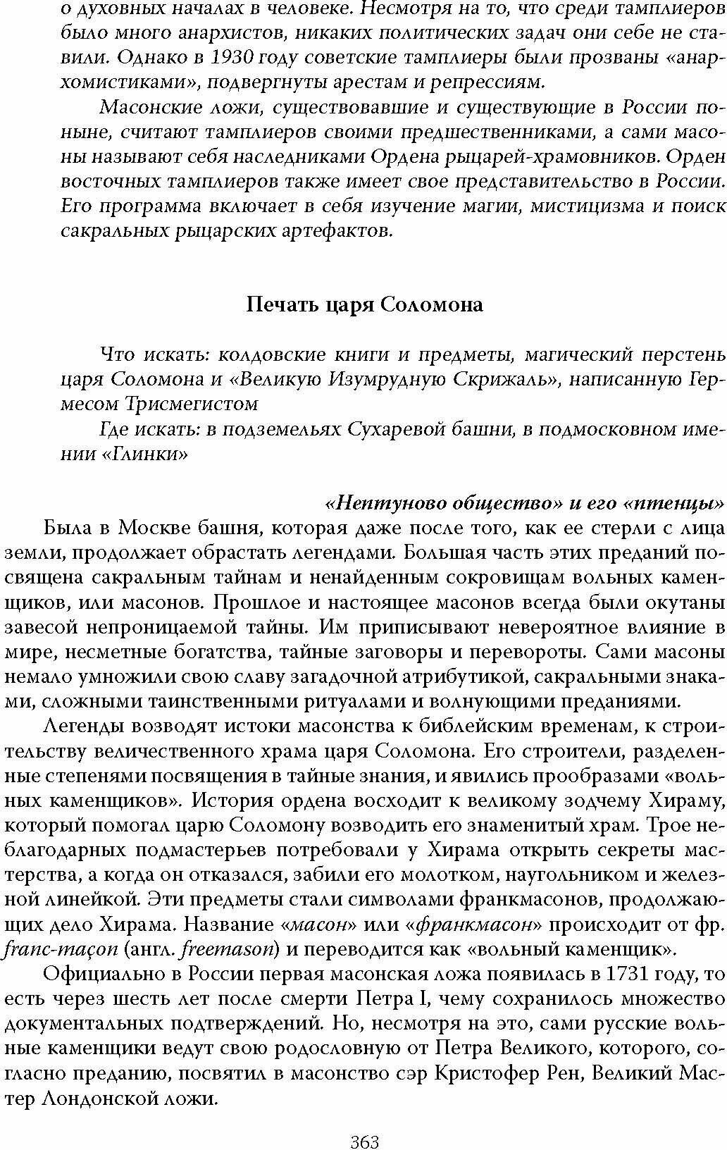 Книга Ирины Сергиевской построена в форме исторического путеводителя по таинственным местам Москвы, где были или могут быть найдены уникальные клады и бесценные сокровища, магические колдовские предметы и сакральные мистические артефакты. Здесь собраны как точные исторические факты, так и легенды и предания, не попавшие в официальные хроники и архивы, истории, оставшиеся вне протоколов и научных отчетов.